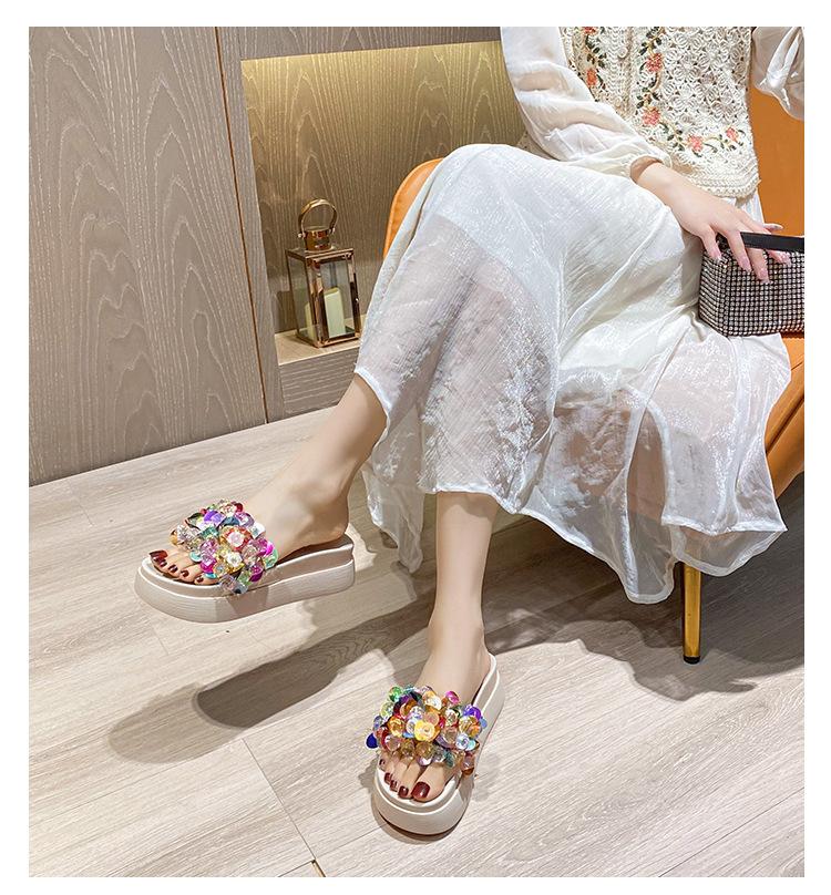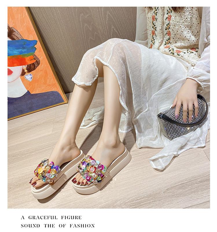 Chanclas de plataforma de moda coloridas para mujer para exteriores verano nuevo playa punta abierta blancas estilo coreano sandalias de mujer
