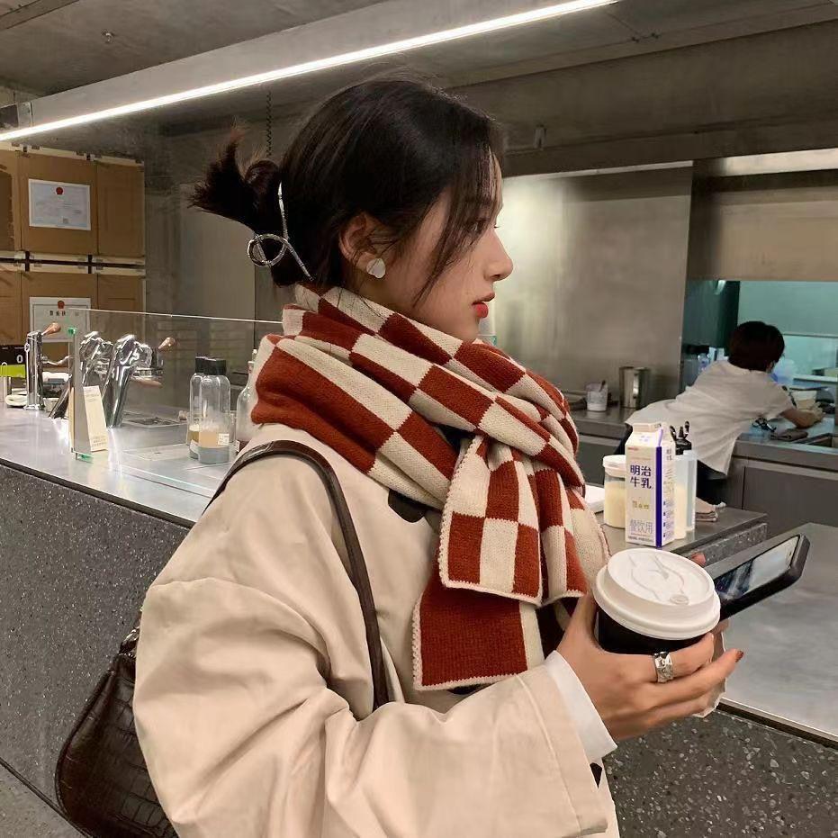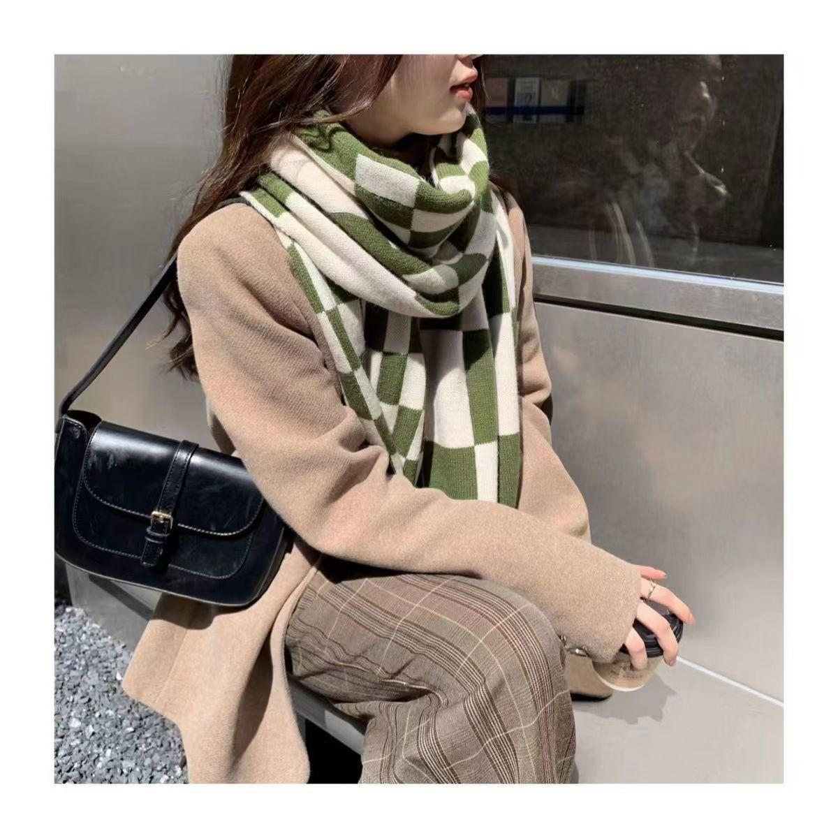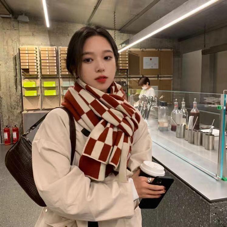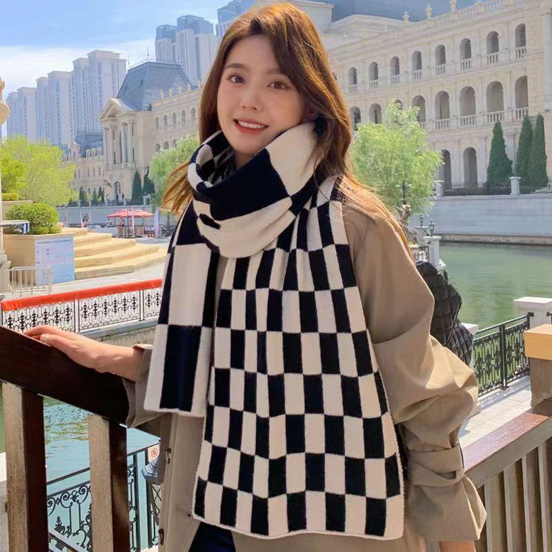 Bufanda a cuadros para mujer, de alta gama, para invierno, otoño e invierno, nueva, combinable, gruesa, cálida, de imitación de cachemira, tejida para hombre.