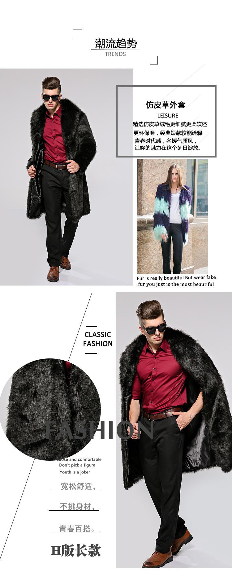 Abrigo largo de piel de zorro para hombre, capa de piel sintética de otoño e invierno 2025, transfronterizo de Amazon Europa y Estados Unidos