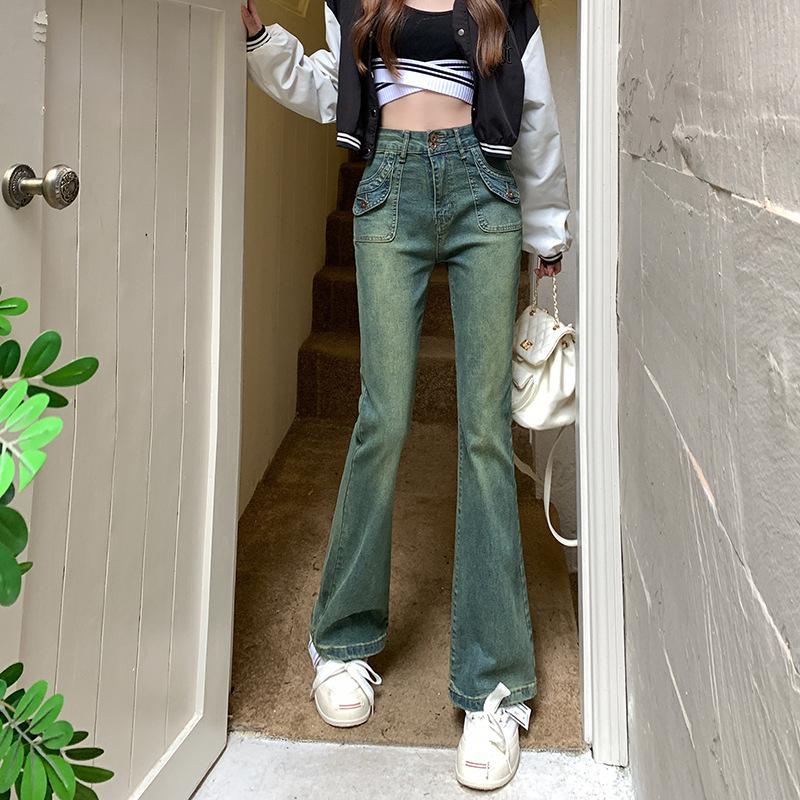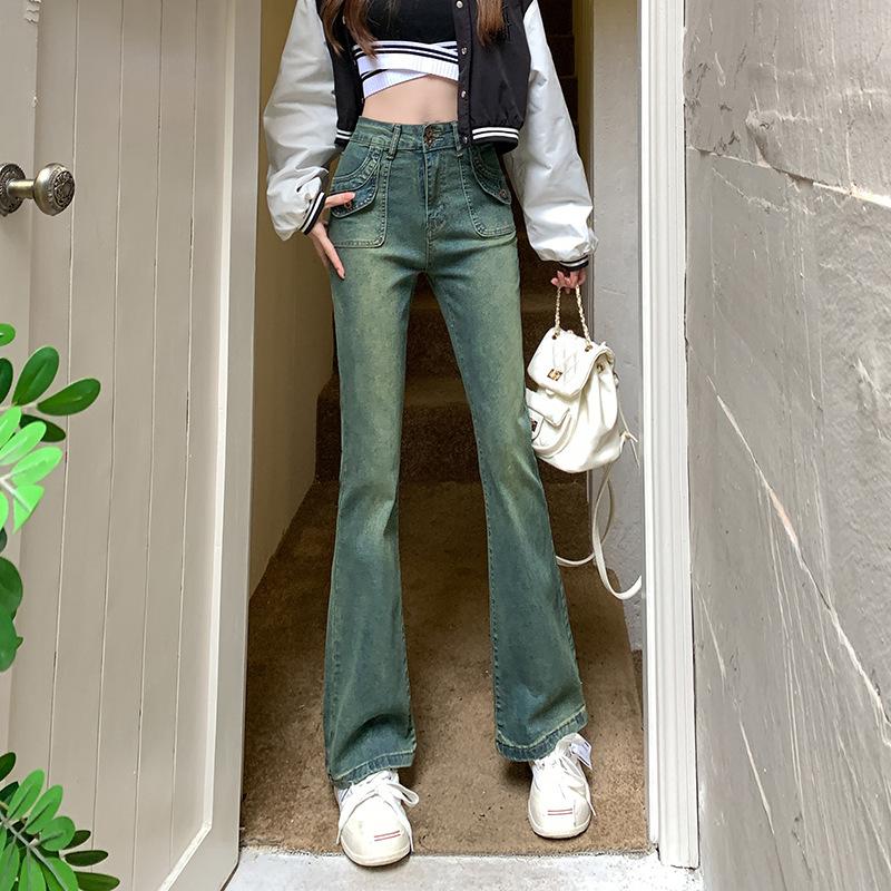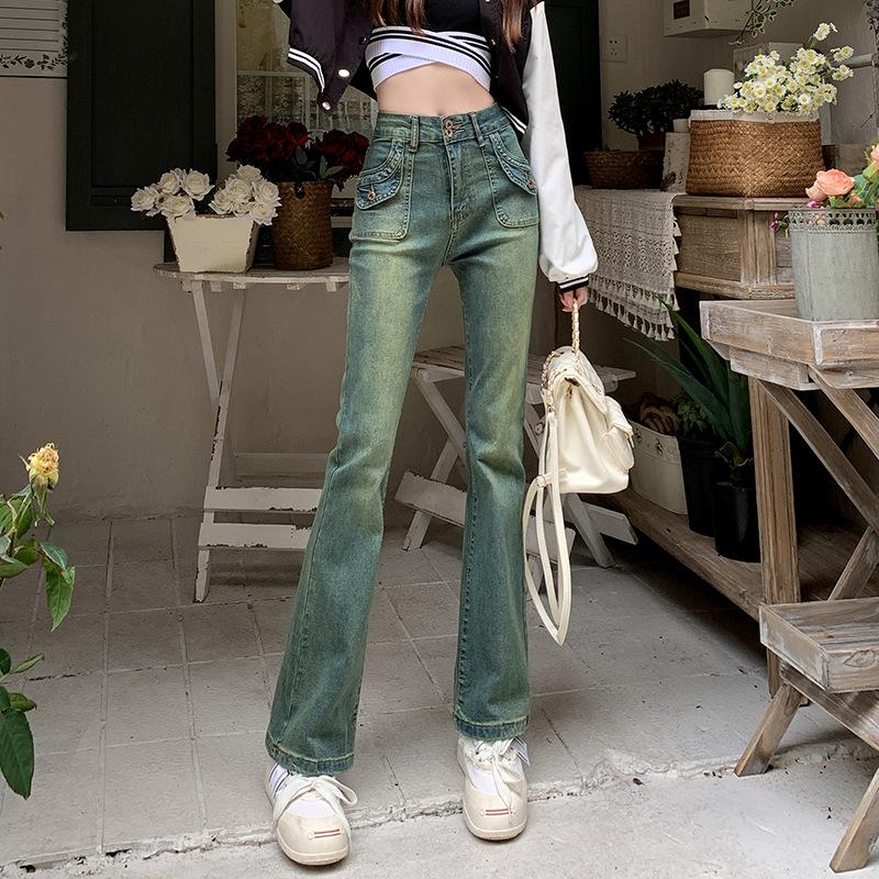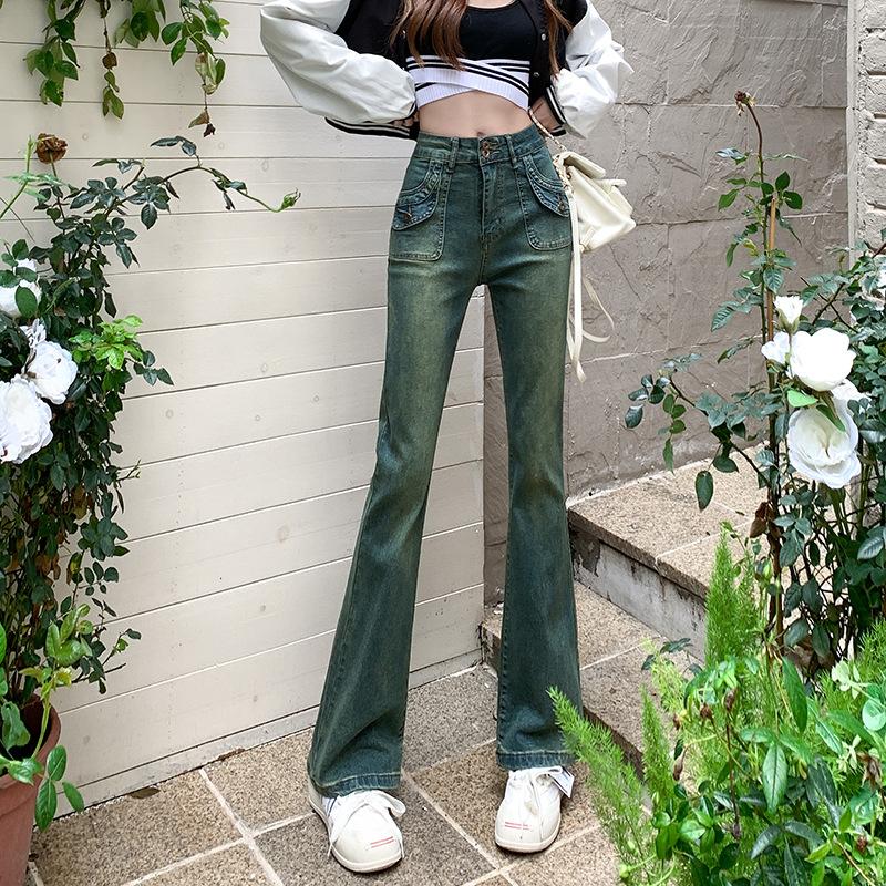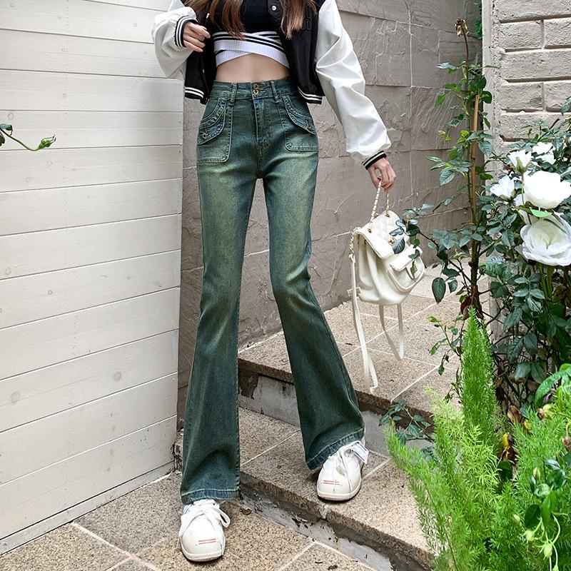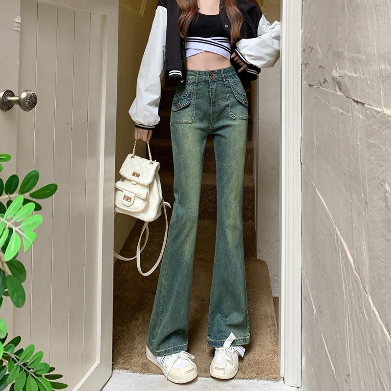 Jeans Vintage de Mujer 2024 Primavera y Otoño Nuevo Cintura Alta Corte Slim Pantalones Acampanados para Figuras Petite