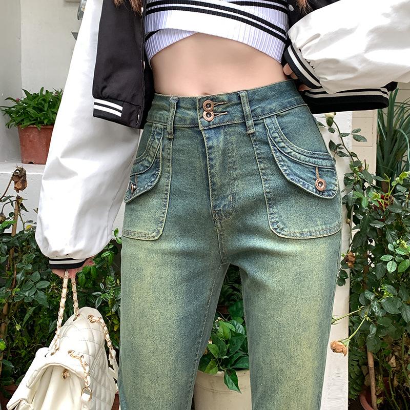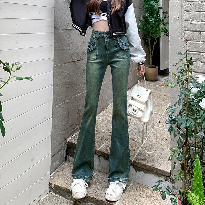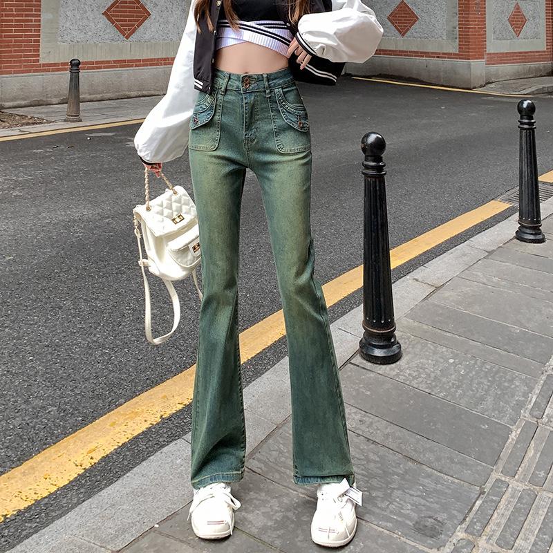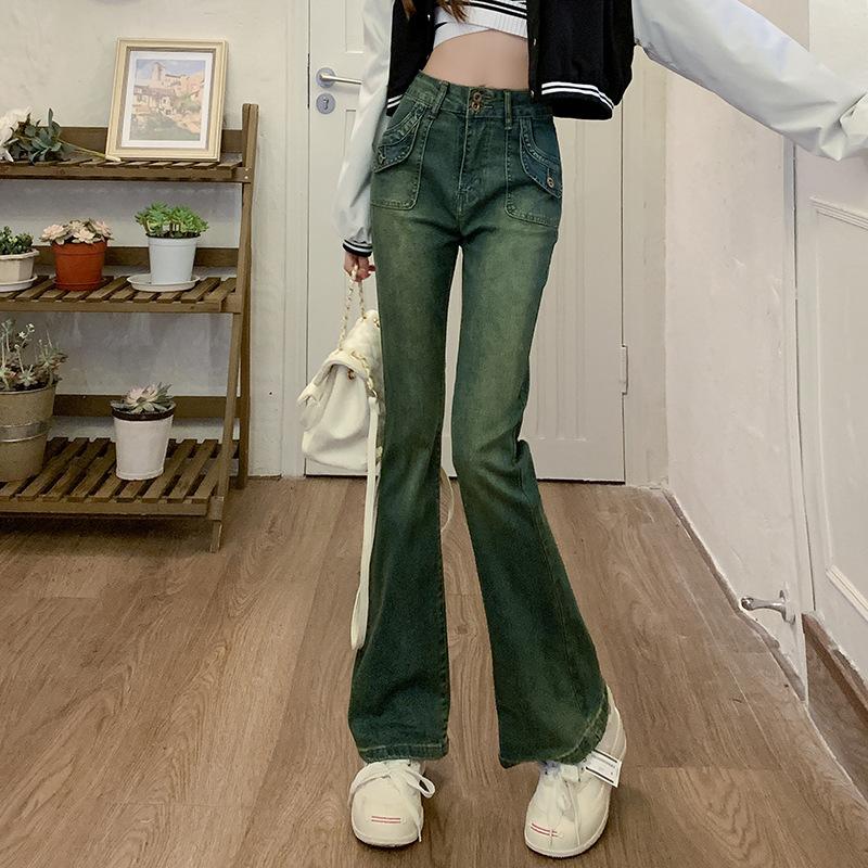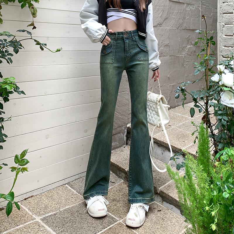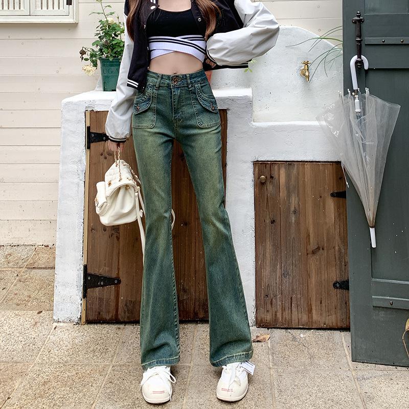 Jeans Vintage de Mujer 2024 Primavera y Otoño Nuevo Cintura Alta Corte Slim Pantalones Acampanados para Figuras Petite