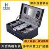 Joyero de doble capa de PU con tapa, práctico joyero para pendientes, anillos, collares, joyas, almacenamiento de joyas, caja de cuero