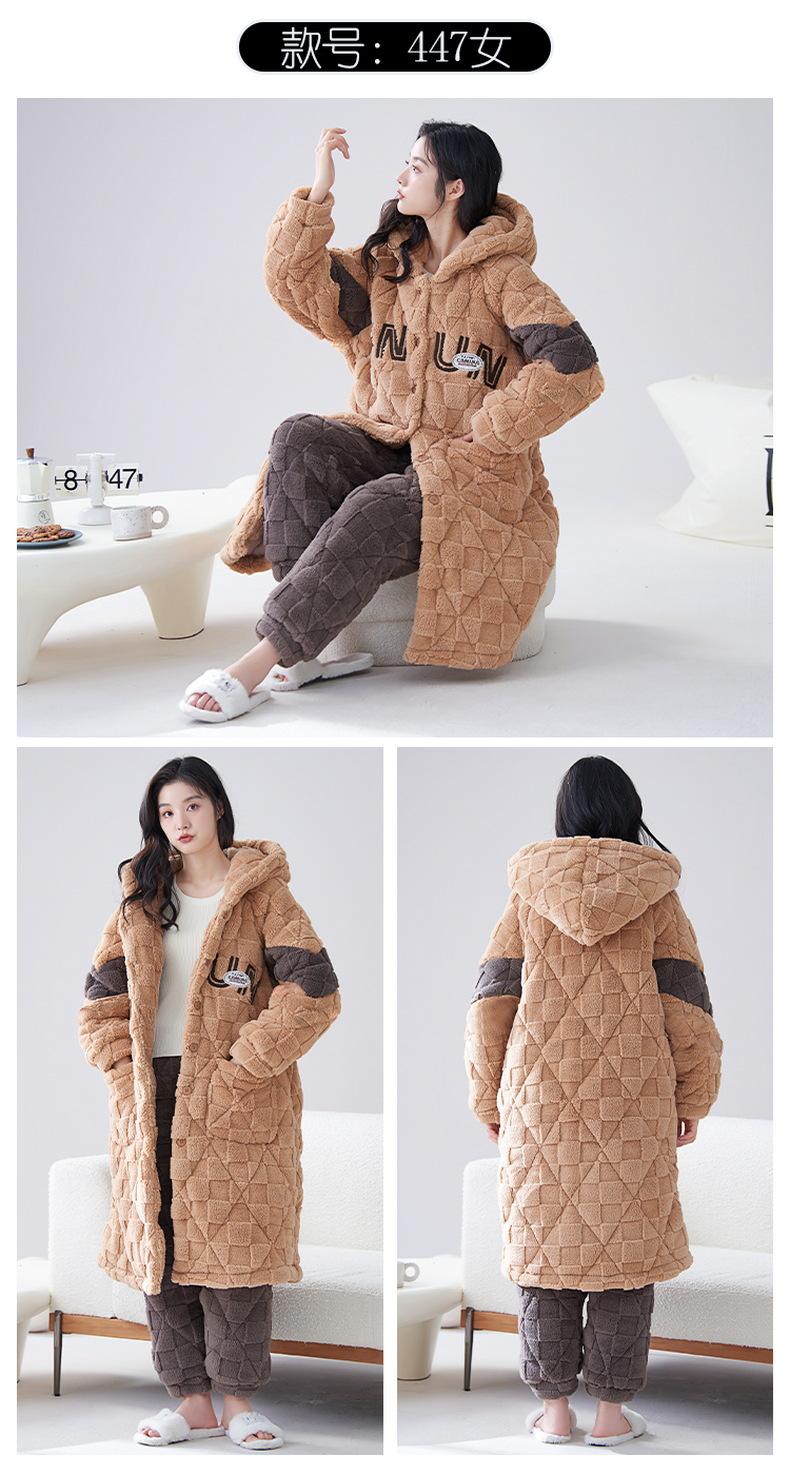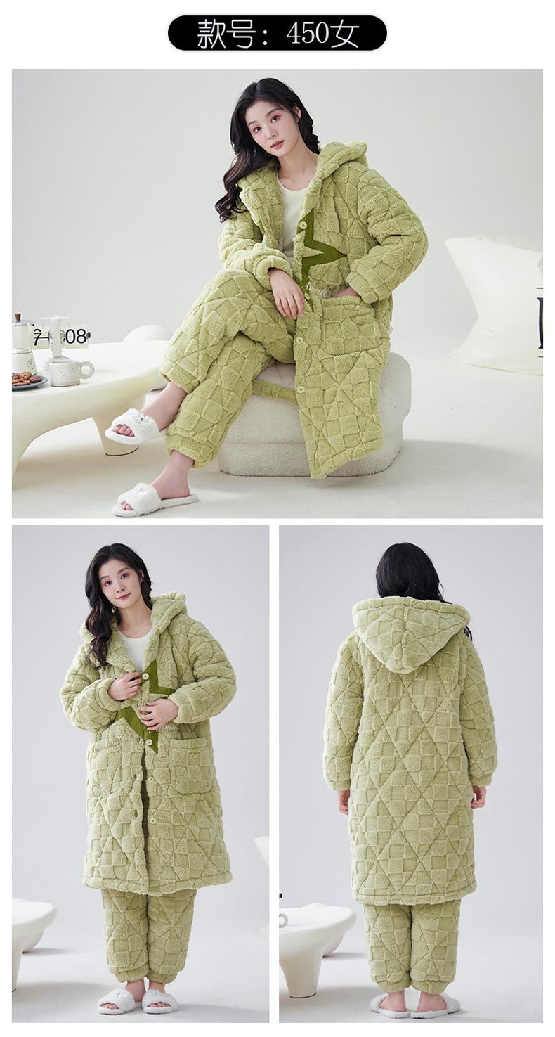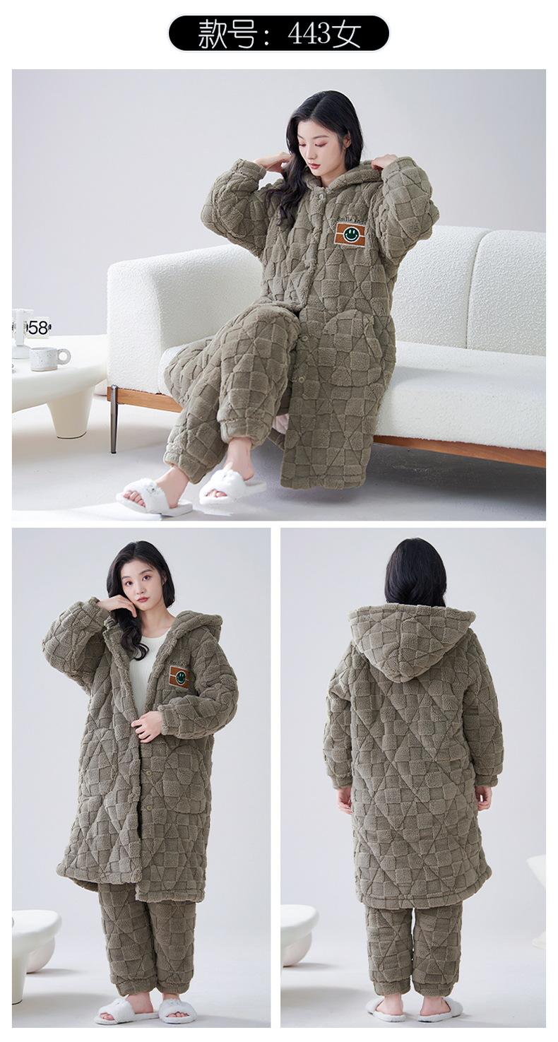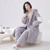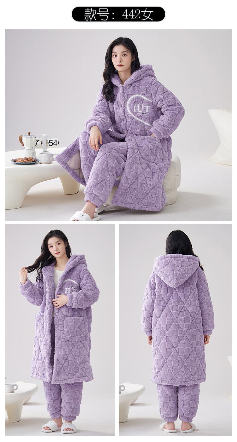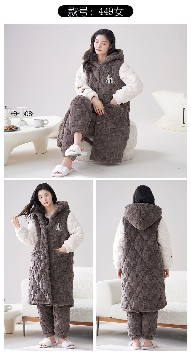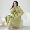 Pijama de forro polar coral para mujer, otoño e invierno, largo, supergrueso, acolchado de tres capas, camisón lindo, traje con volantes, ropa de casa