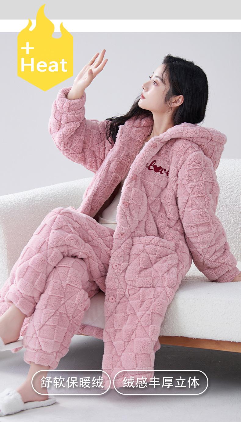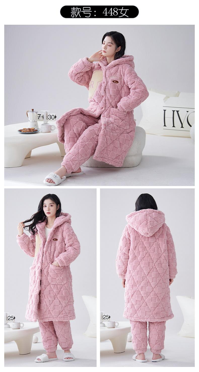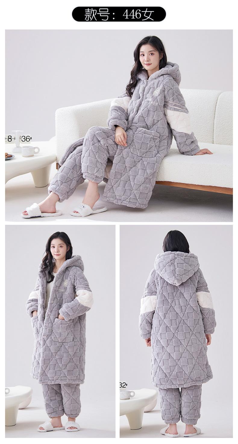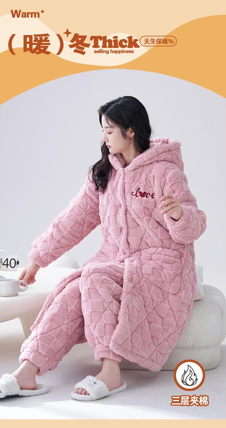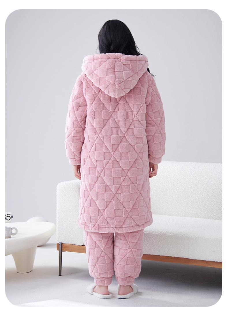 Pijama de forro polar coral para mujer, otoño e invierno, largo, supergrueso, acolchado de tres capas, camisón lindo, traje con volantes, ropa de casa
