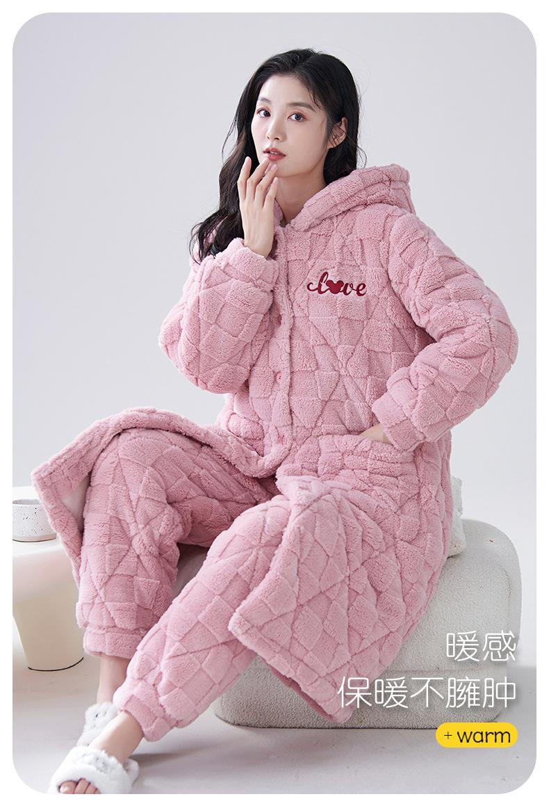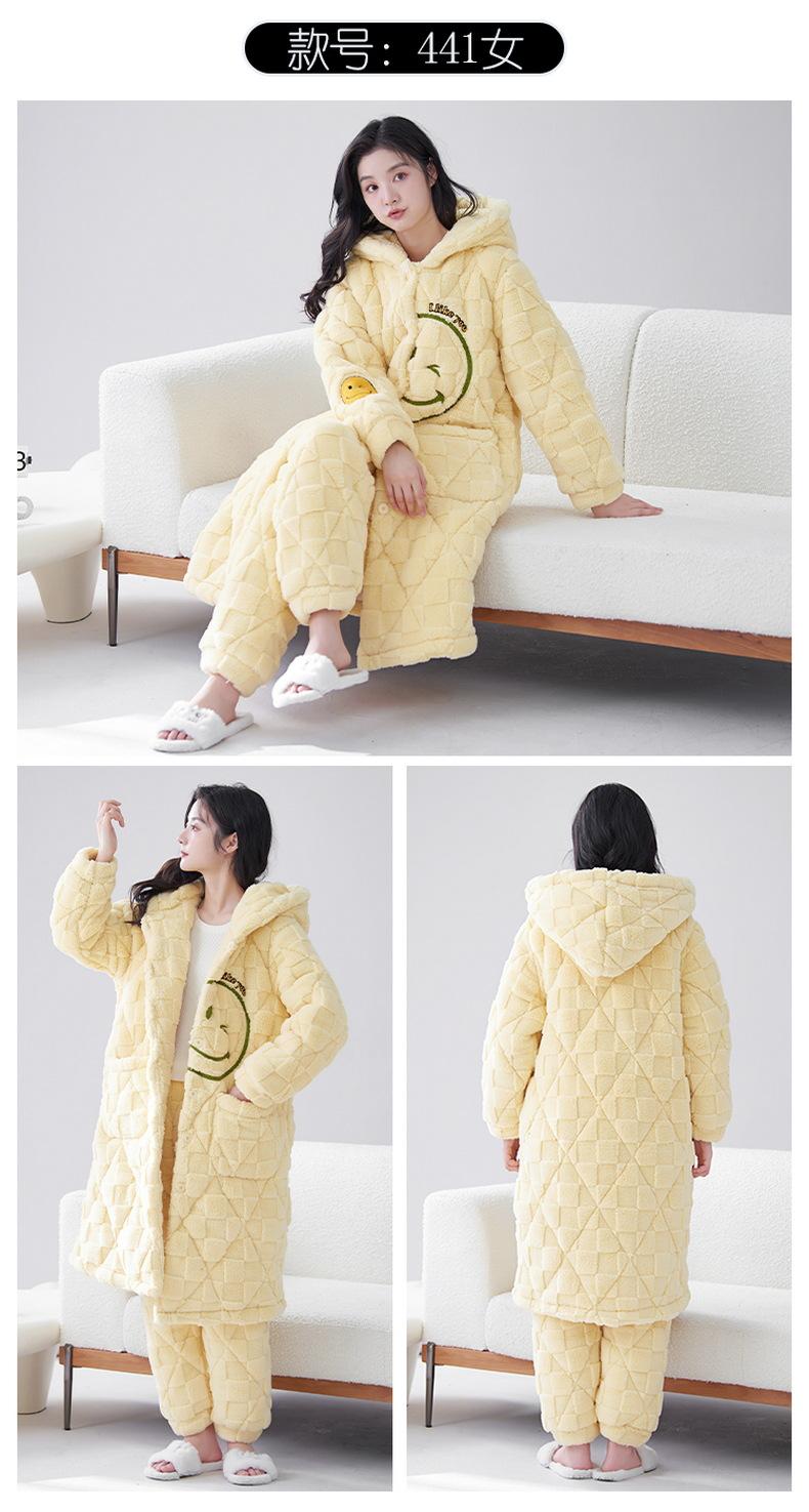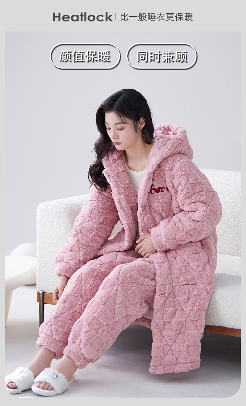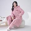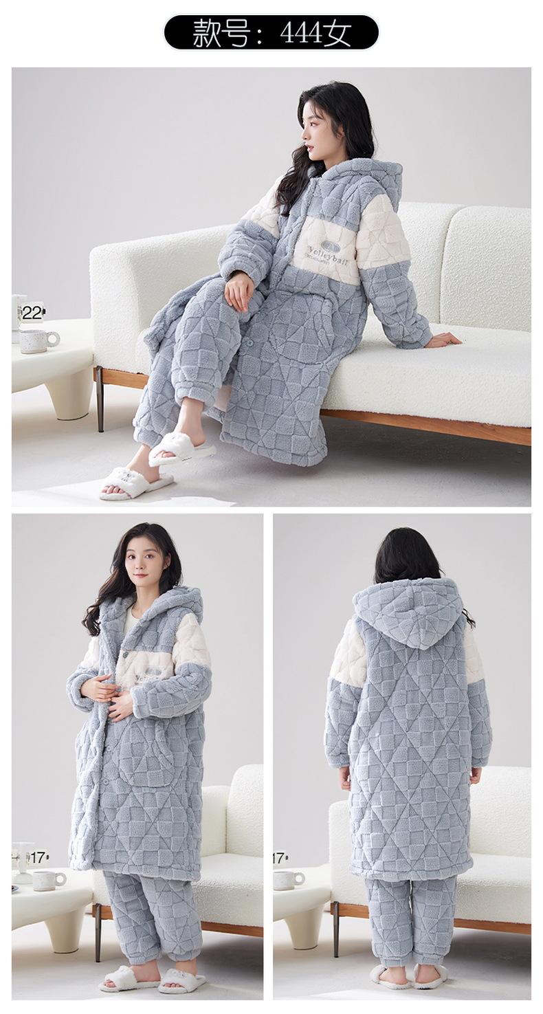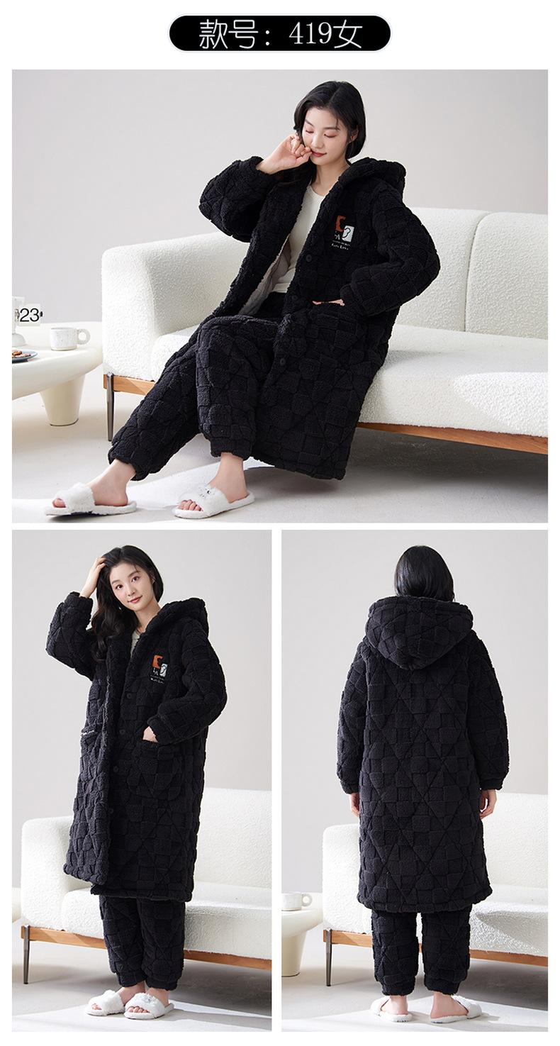 Pijama de forro polar coral para mujer, otoño e invierno, largo, supergrueso, acolchado de tres capas, camisón lindo, traje con volantes, ropa de casa