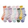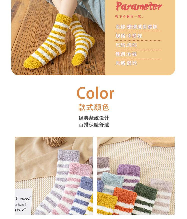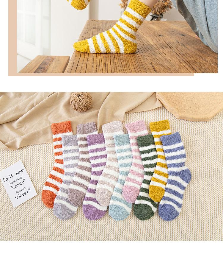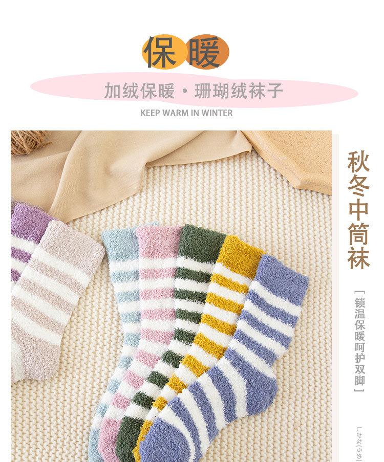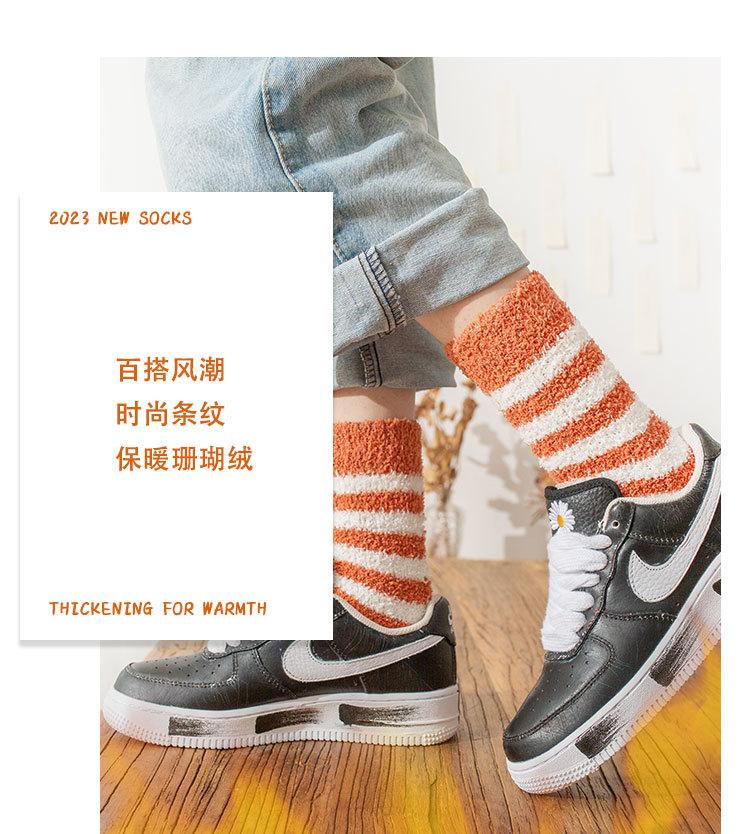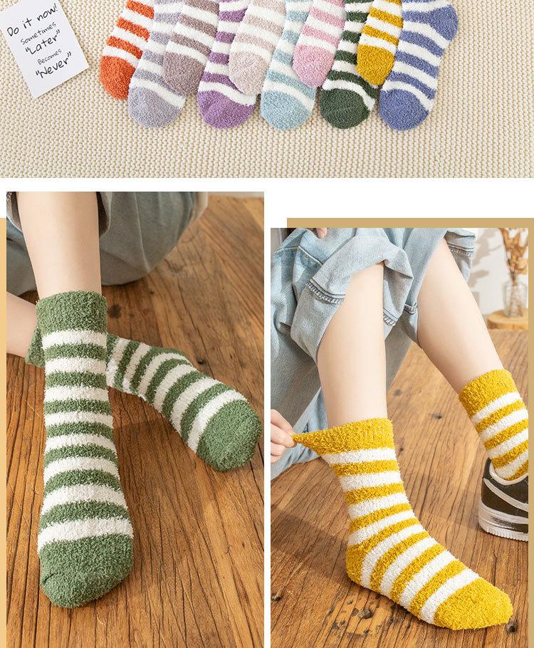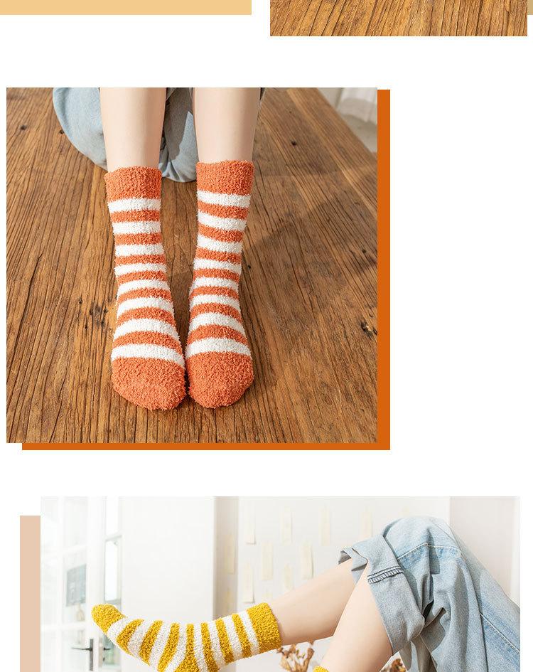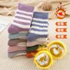 Calcetines de invierno para mujer, calcetines de tubo medio, calcetines de piel a rayas, calcetines cálidos de lana coral para dormir en el suelo para otoño e invierno.