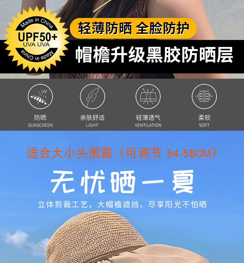 Sombrero de sol de goma negra para mujer, protección UV, ala grande, pescador, plegable, nuevo