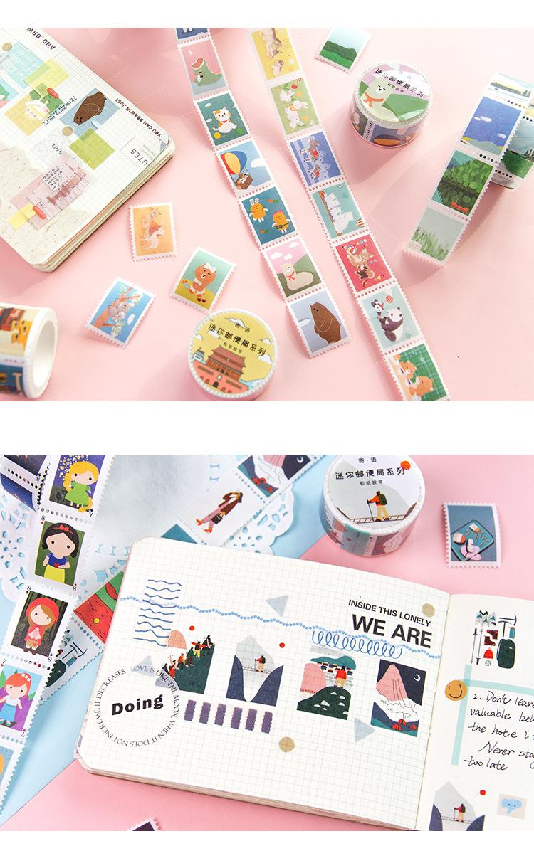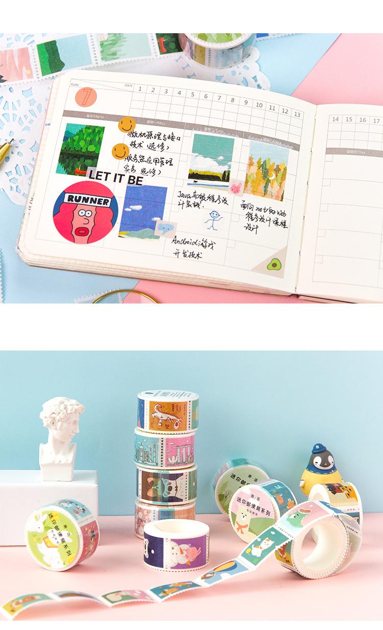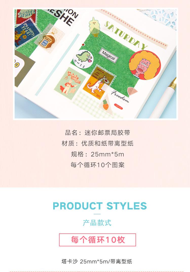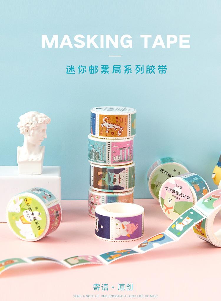 Cinta adhesiva con mensaje de la serie Mini Post Office, 10 pegatinas de animales de dibujos animados para diario, manualidades y manualidades.
