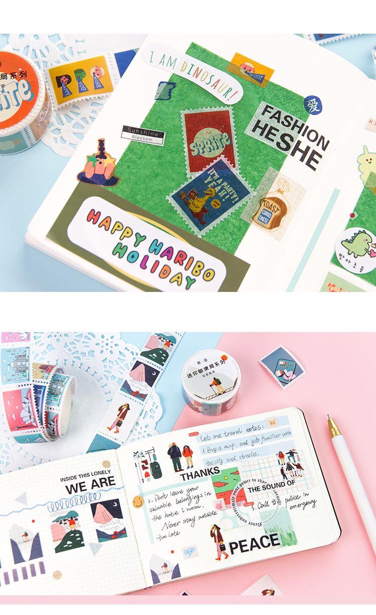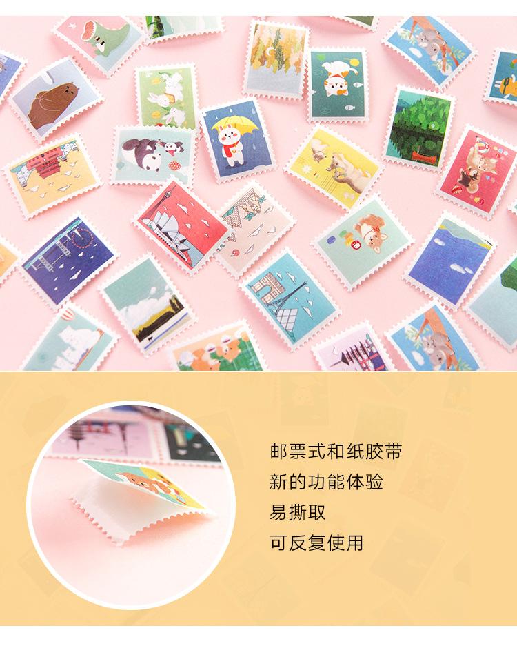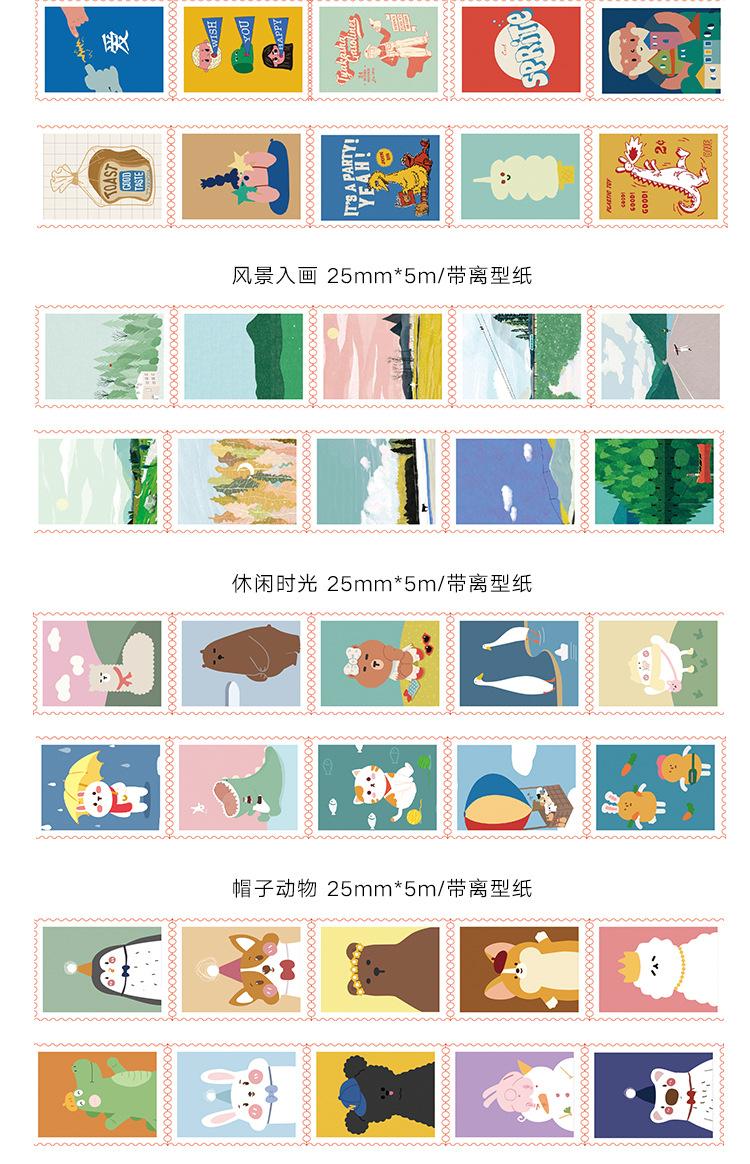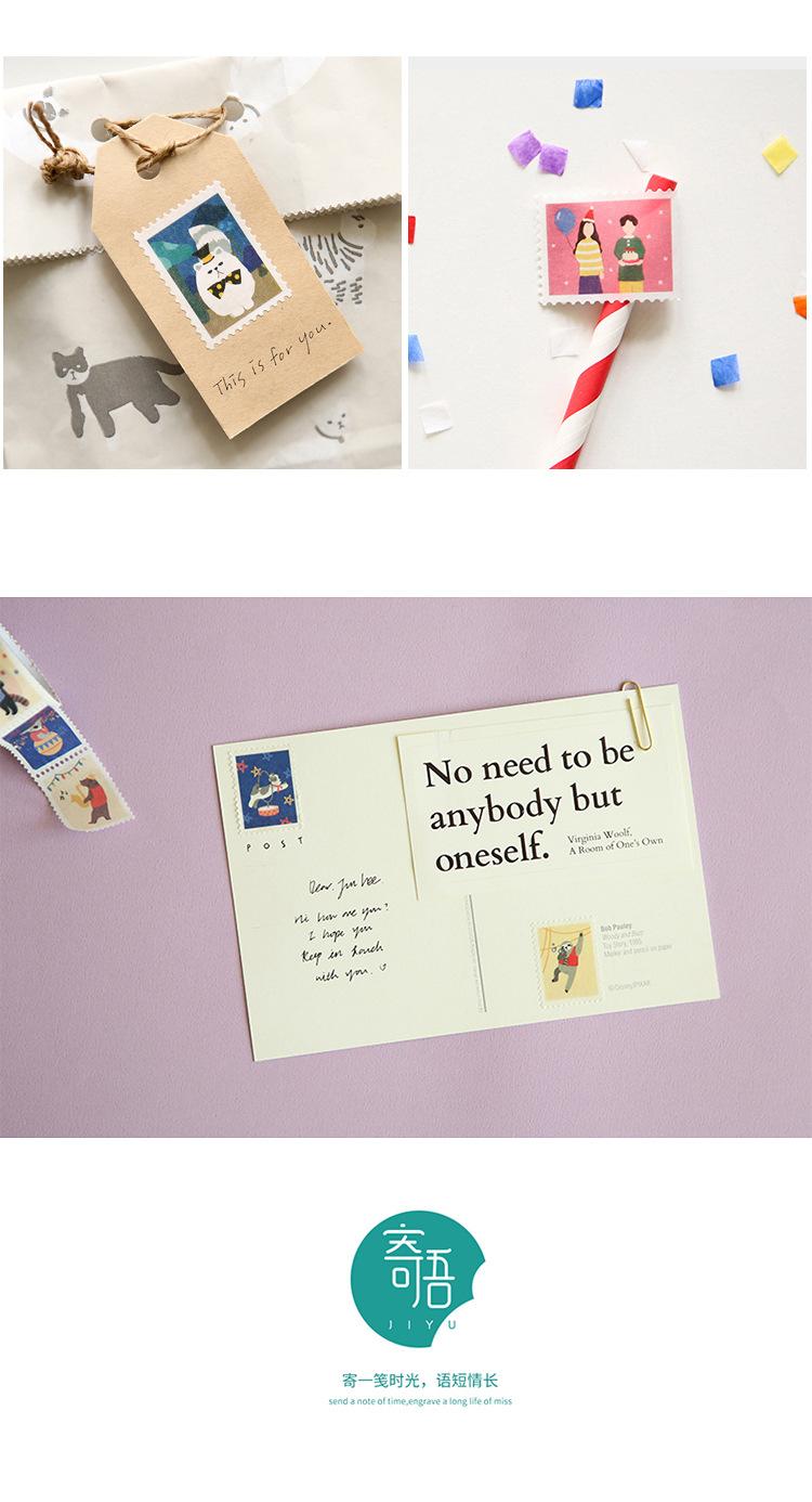 Cinta adhesiva con mensaje de la serie Mini Post Office, 10 pegatinas de animales de dibujos animados para diario, manualidades y manualidades.