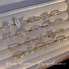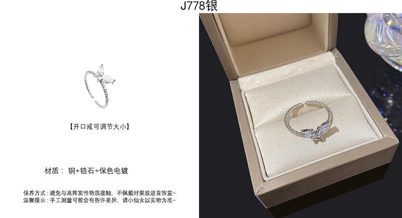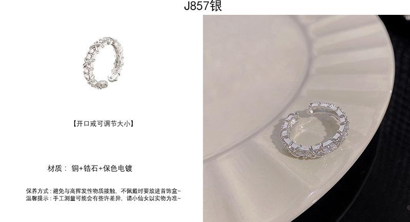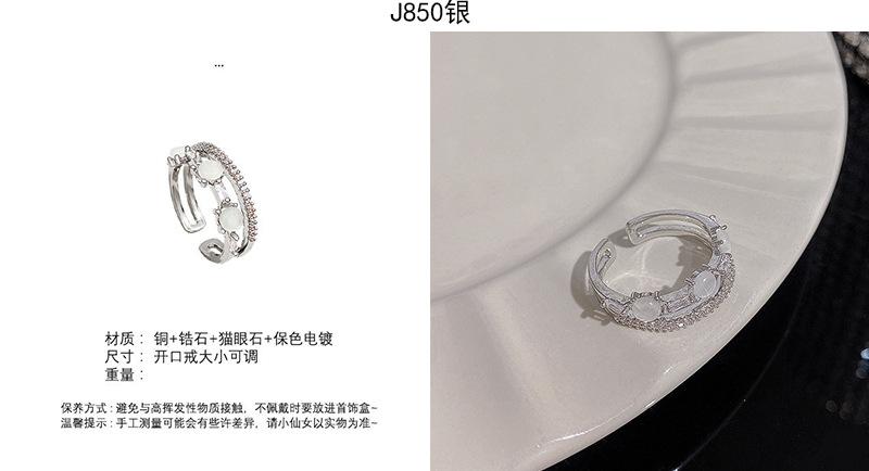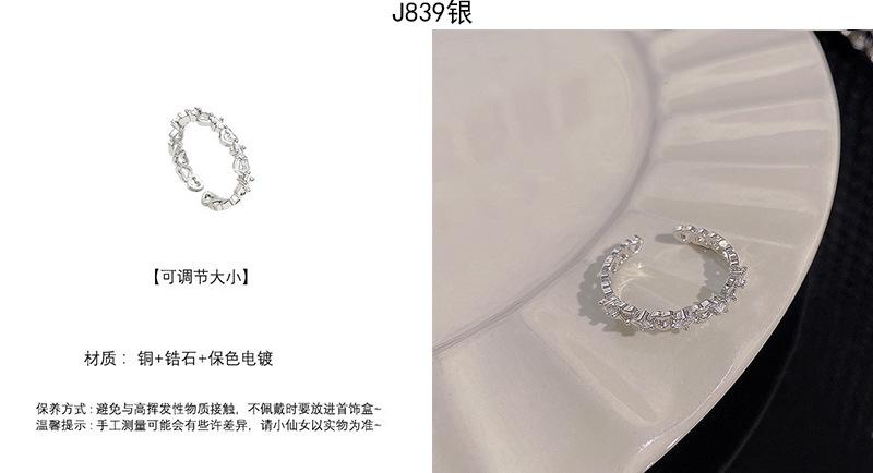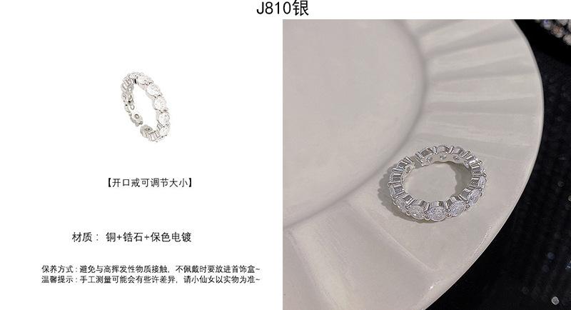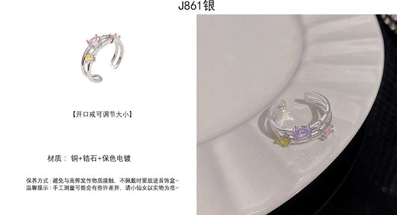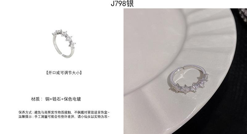 | |  | Anillo de circonita plateada estilo ins para mujer, ligero, de lujo, de alta gama, abierto, versátil, con temperamento, joyería de mano al por mayor. | | |