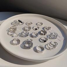 | |  | Anillo de plata con personalidad de hip-hop estilo ins para mujer, diseño de nicho retro, anillo abierto, nueva joyería de mano al por mayor | | |