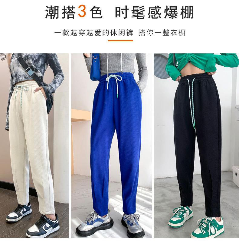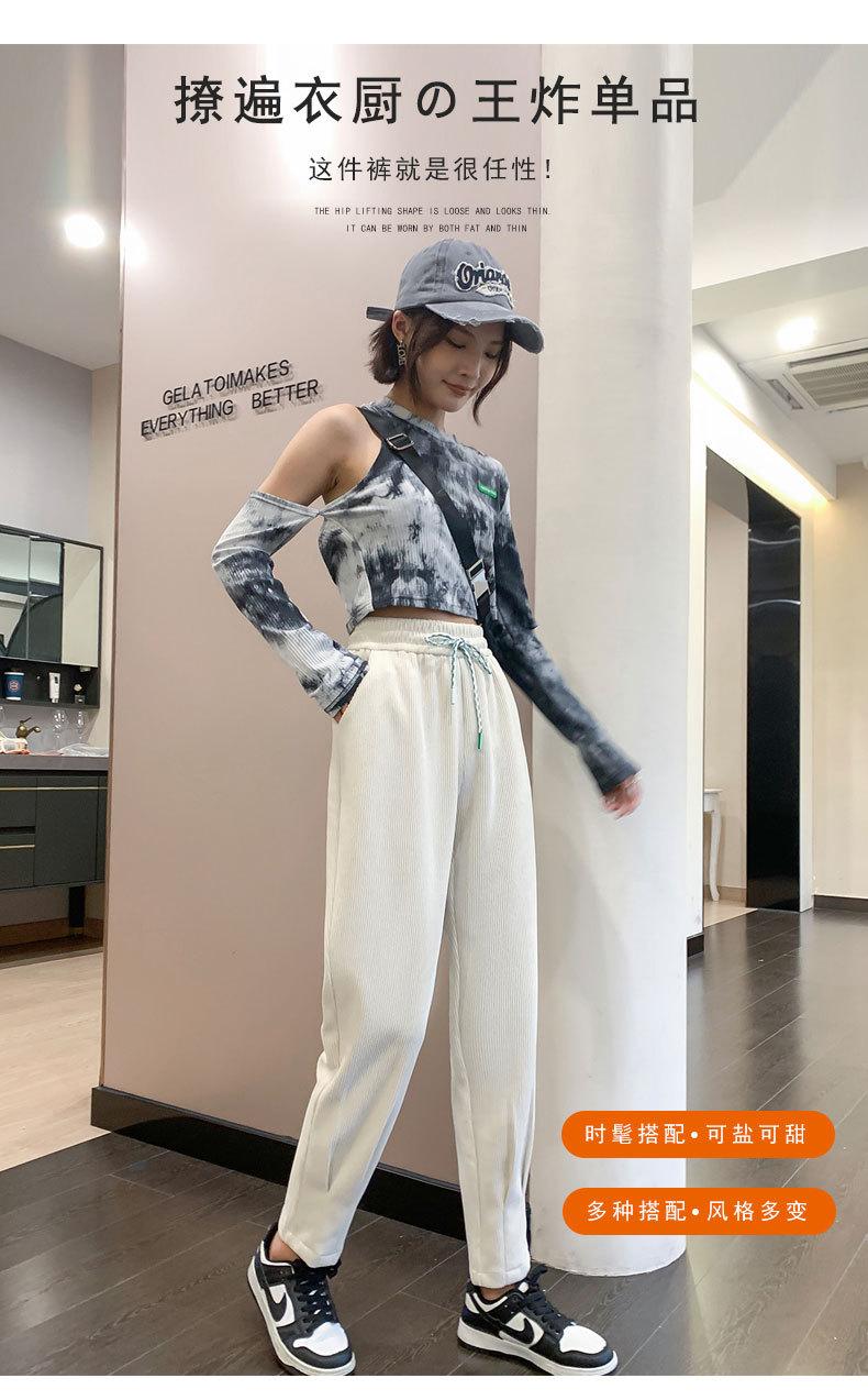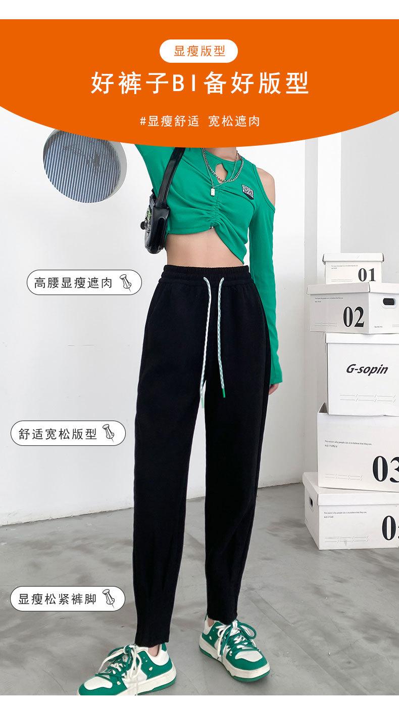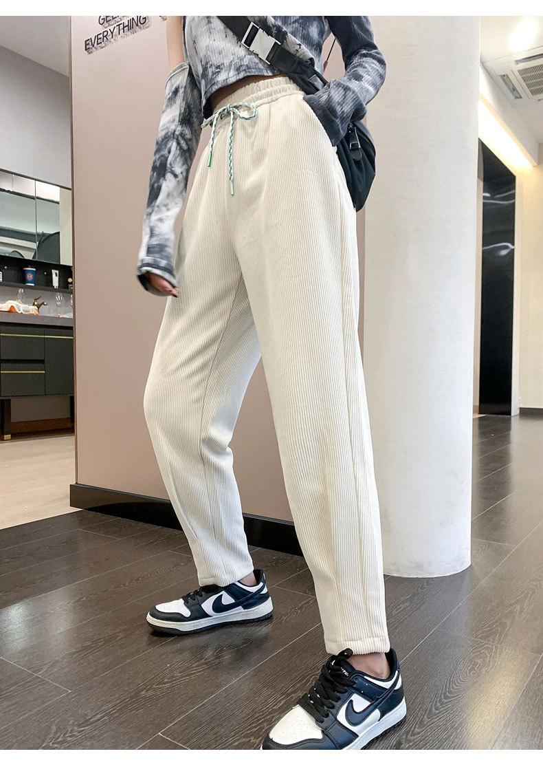 Pantalones deportivos con lazo en la pierna, Cordones contrastantes, Pantalones deportivos casuales, Pantalones casuales, Talla grande para mujer, Aspecto adelgazante, Pantalones harén holgados, Ropa nueva de otoño