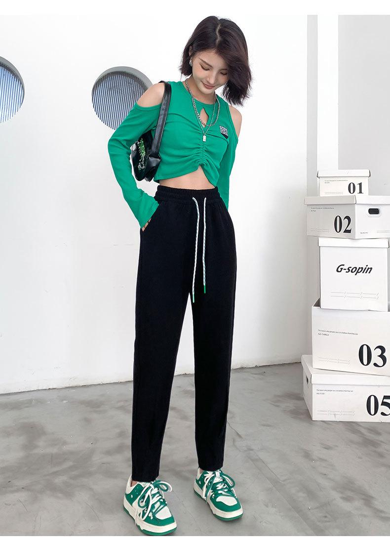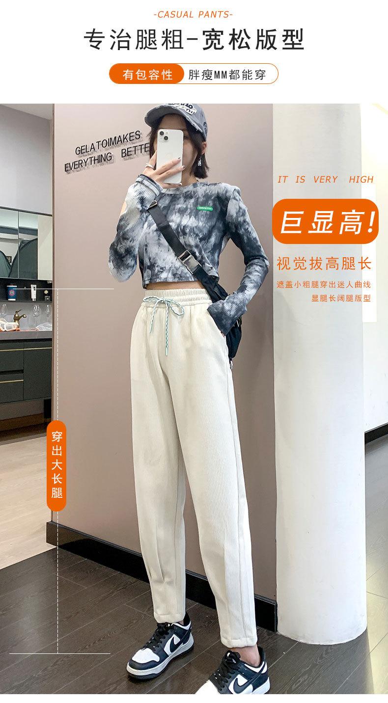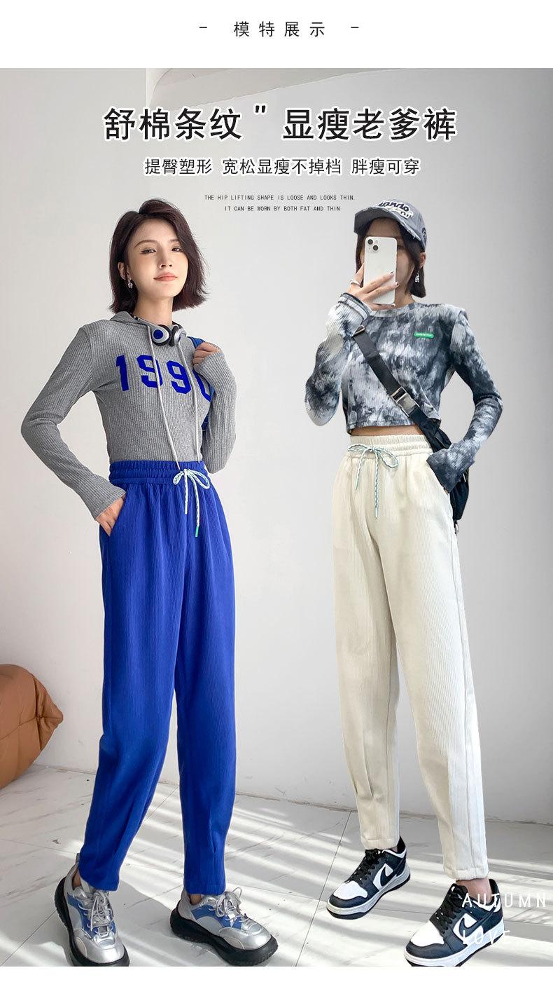 Pantalones deportivos con lazo en la pierna, Cordones contrastantes, Pantalones deportivos casuales, Pantalones casuales, Talla grande para mujer, Aspecto adelgazante, Pantalones harén holgados, Ropa nueva de otoño