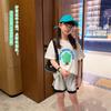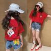 Camiseta de algodón puro para niños, de verano, fina, holgada, de manga corta, para niños de talla mediana a grande, de verano, con mangas al hombro, estilo occidental, para niñas, de media manga