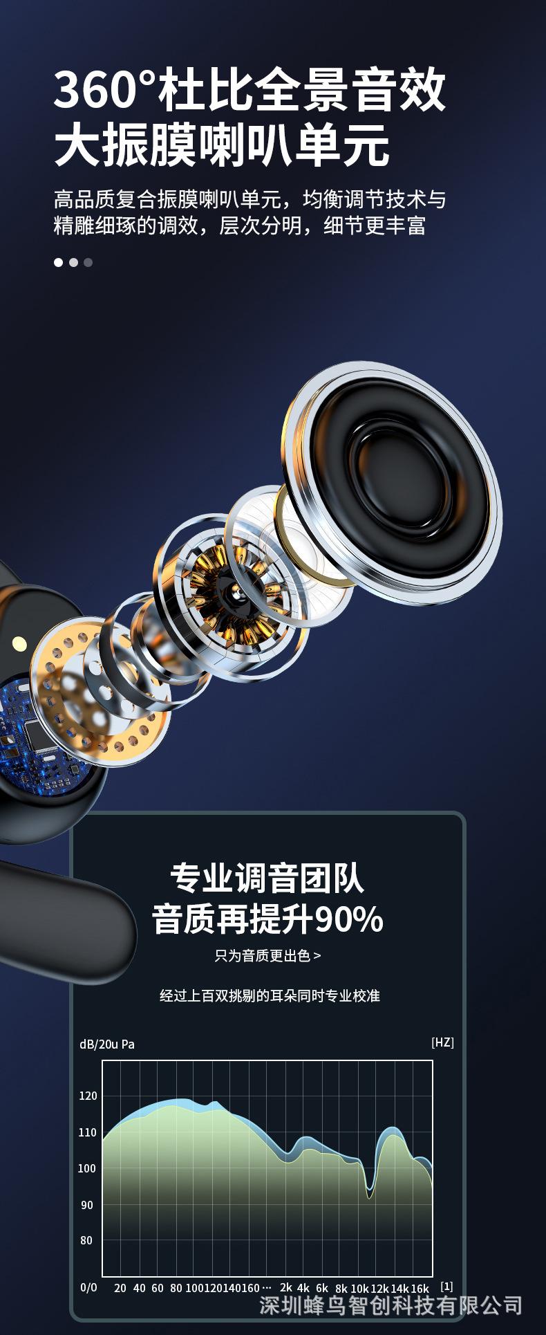 Características principales: Verdaderamente inalámbrico, llamada binaural, pantalla digital inteligente, diseño OWS de oído abierto para comodidad de uso prolongado