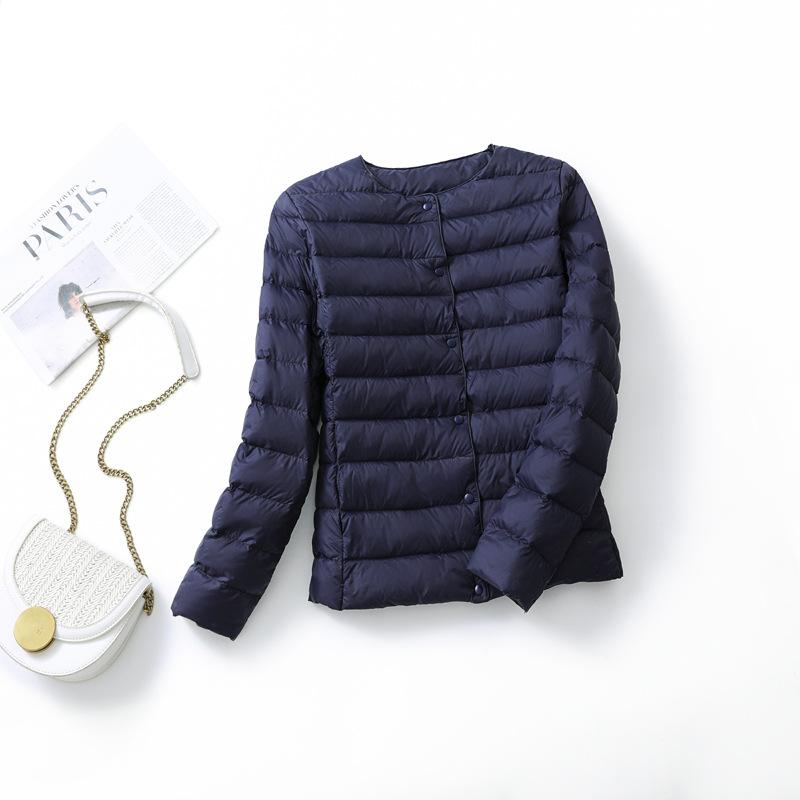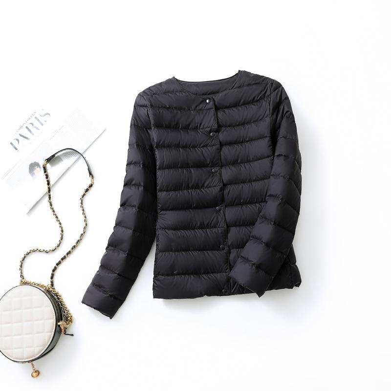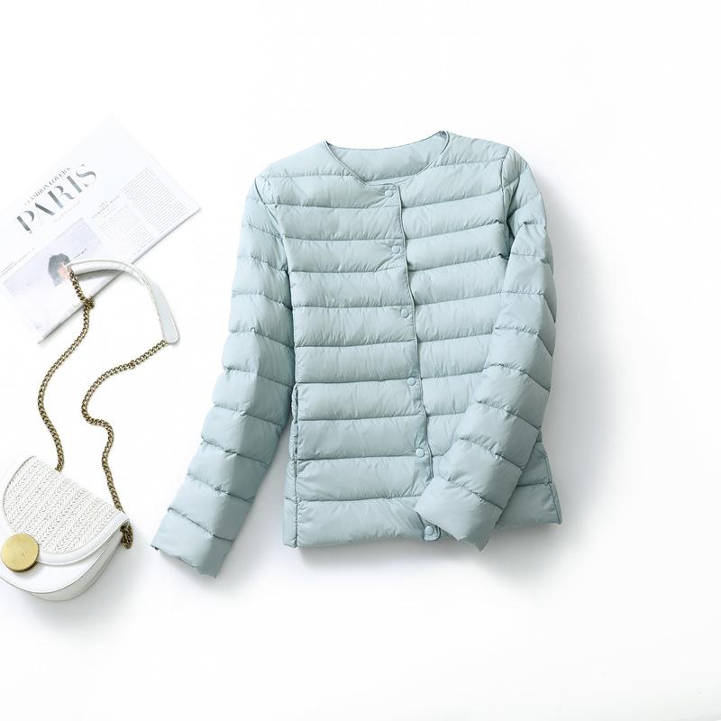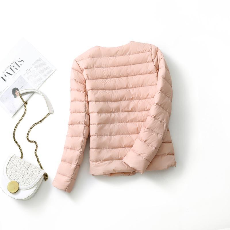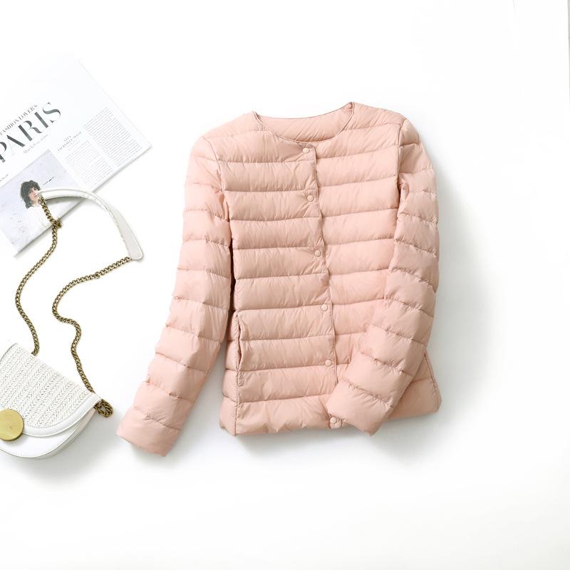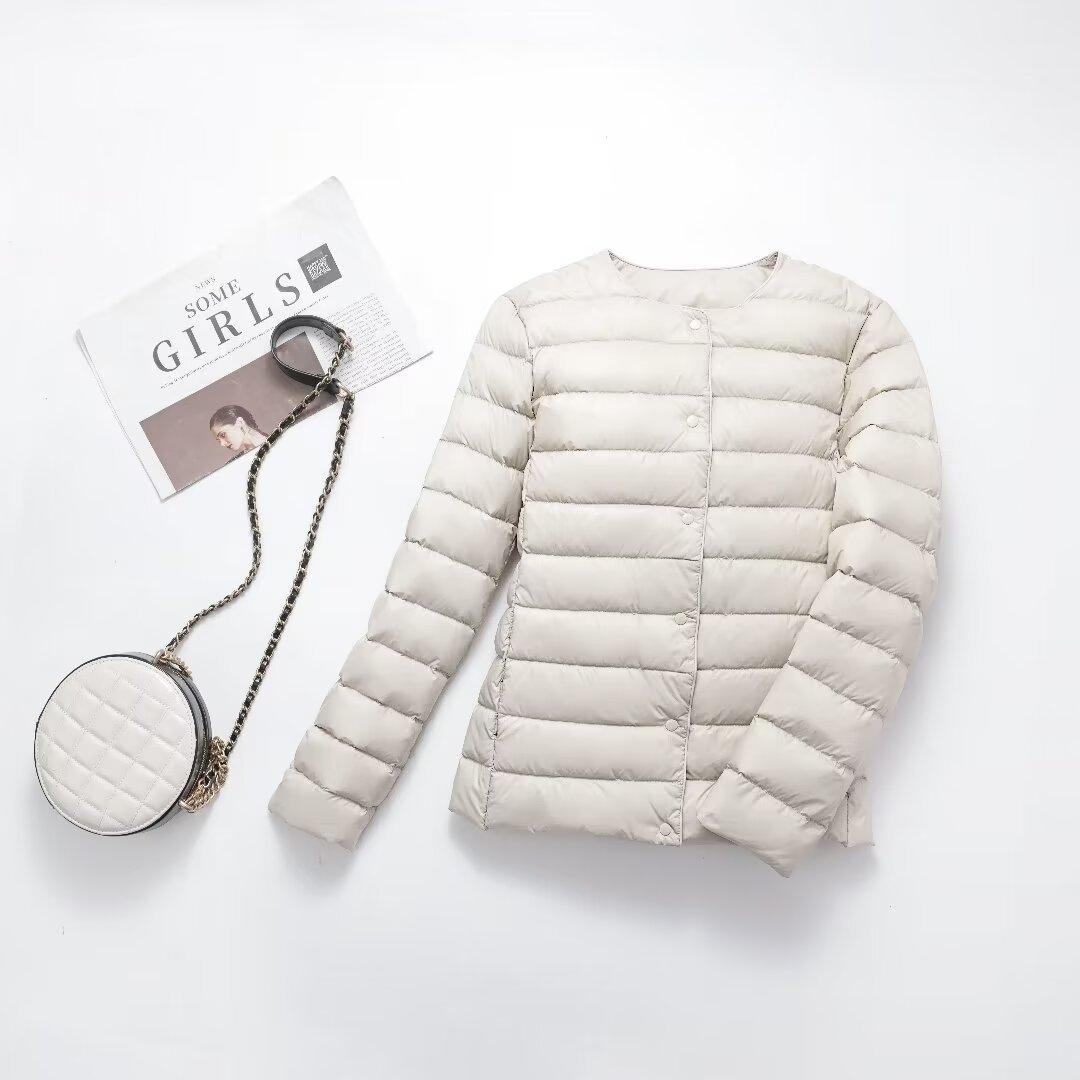Chaqueta de Plumón Ligera para Mujer Abrigo de Manga Larga Otoño e Invierno Rompevientos Ligero Cuello Redondo Traje de Bolas de Plumón Talla Grande Corte Slim Corto