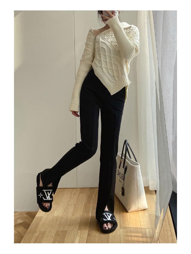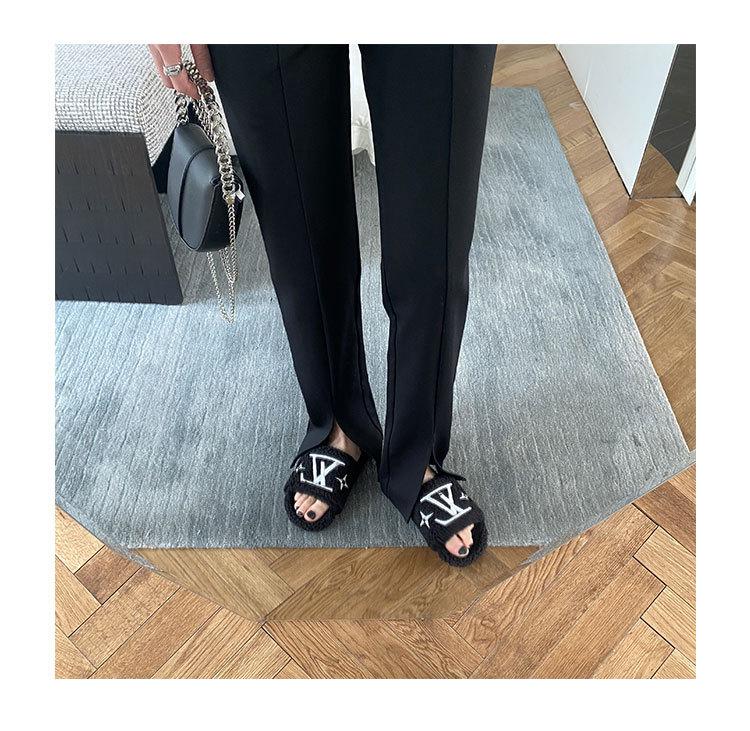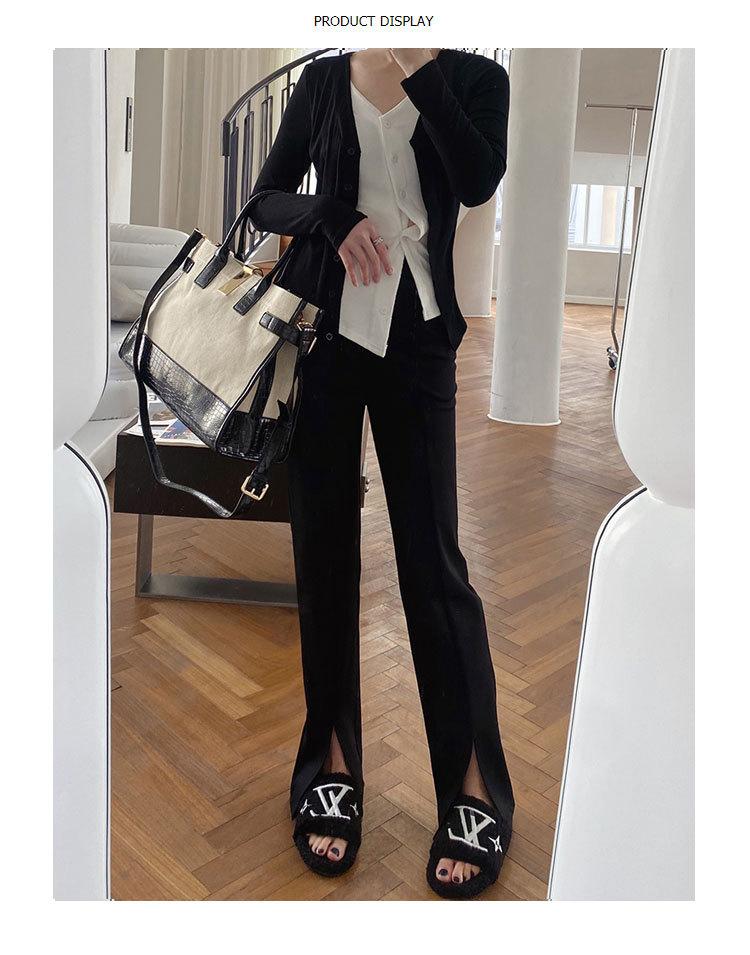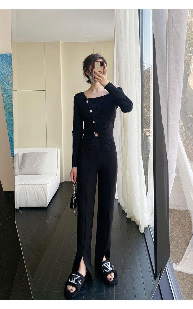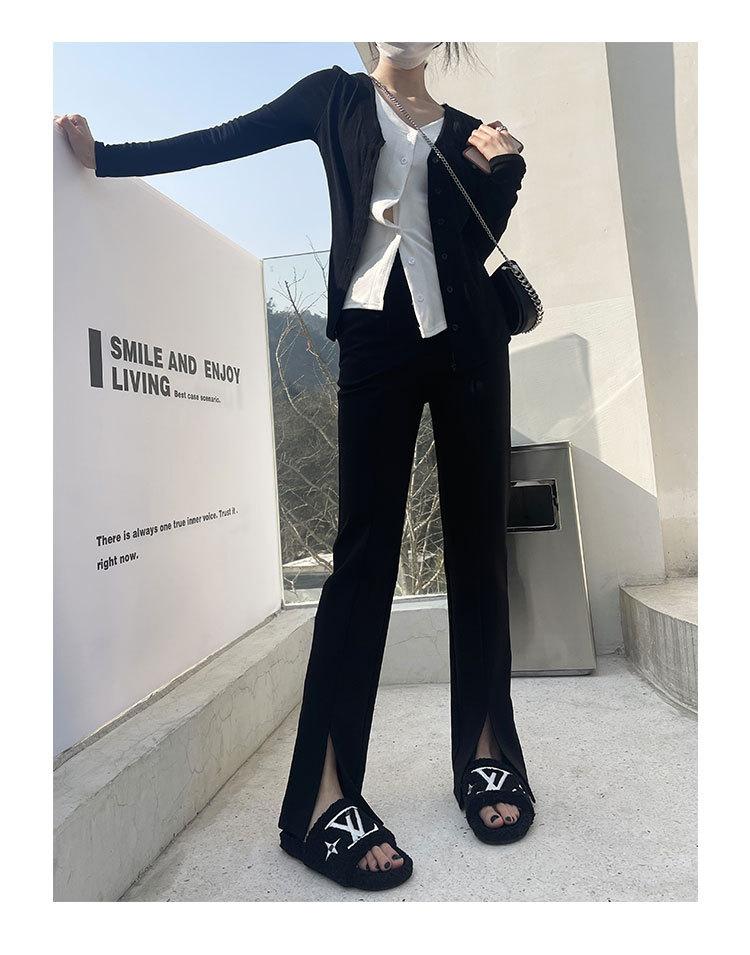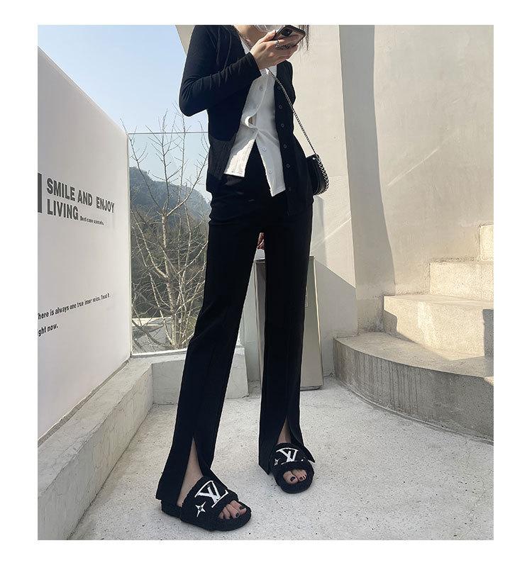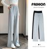 Pantalones anchos con abertura para mujer, primavera y otoño 2024, nuevos pantalones rectos informales adelgazantes de cintura alta, pantalones de microtraje