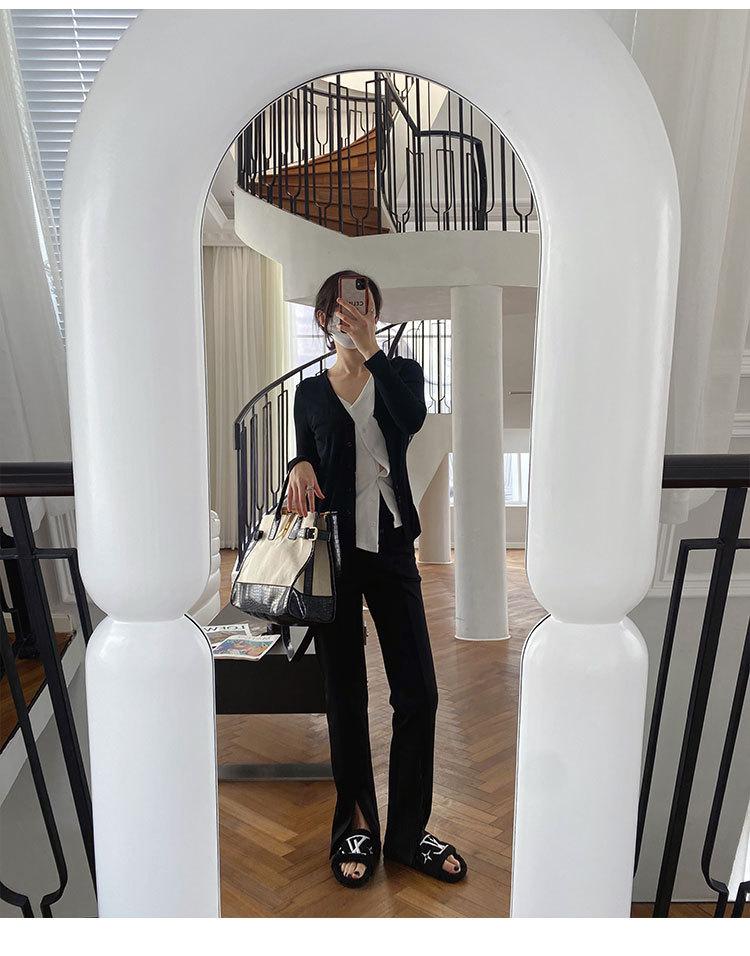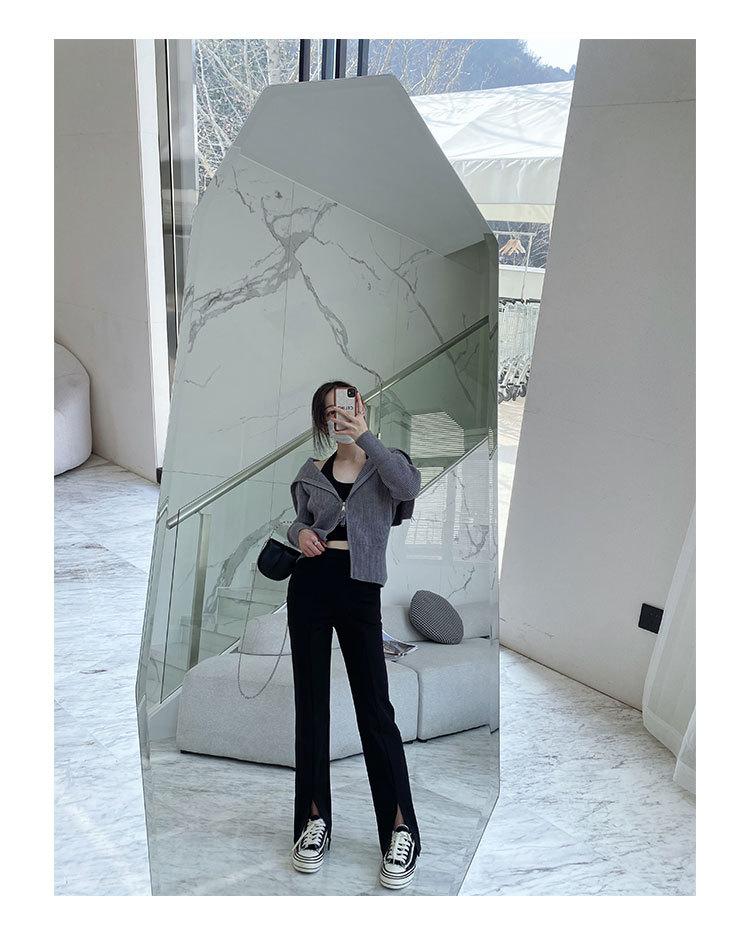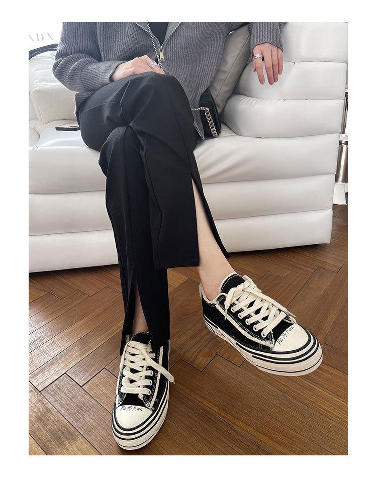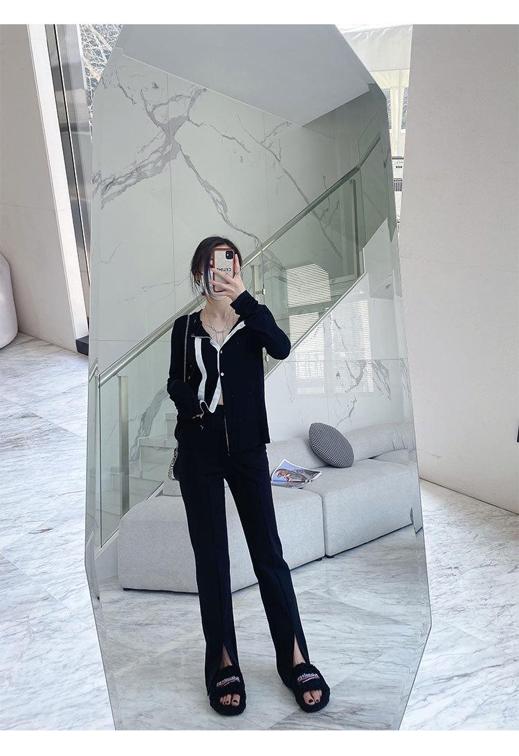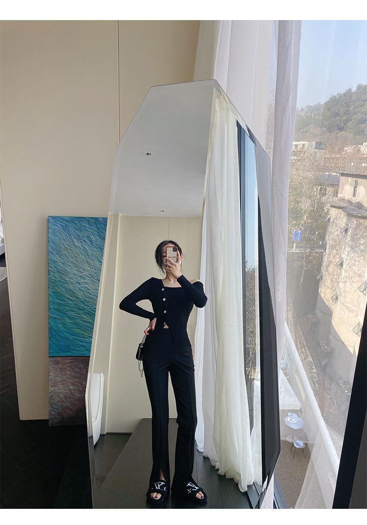 Pantalones anchos con abertura para mujer, primavera y otoño 2024, nuevos pantalones rectos informales adelgazantes de cintura alta, pantalones de microtraje