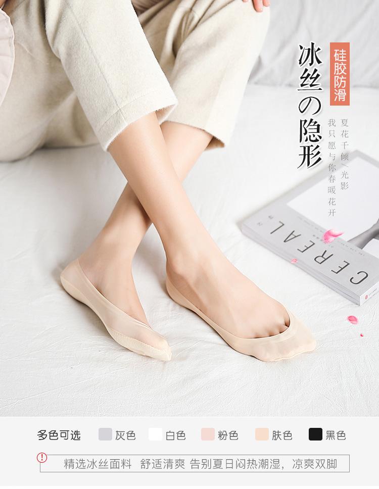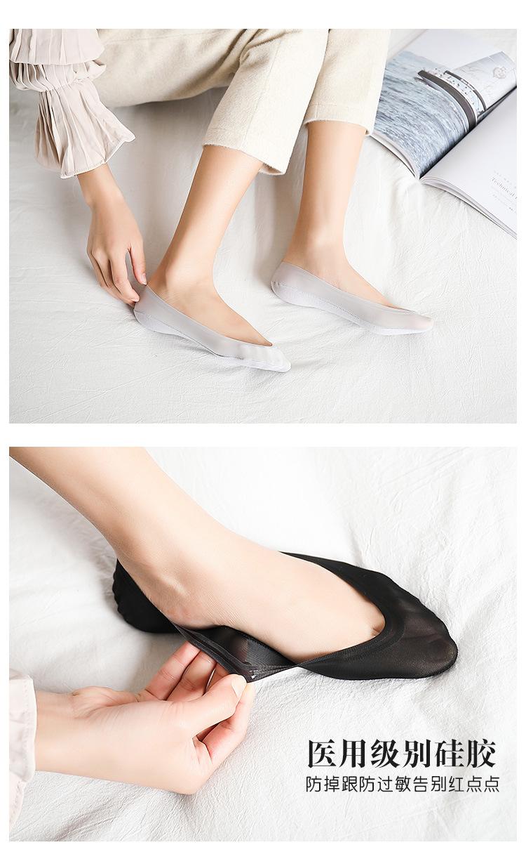 Calcetines de seda de hielo para mujer, ultrafinos, sin costuras, de verano, de boca baja, de algodón, antideslizantes de silicona, bonitos calcetines náuticos invisibles de Corea.
