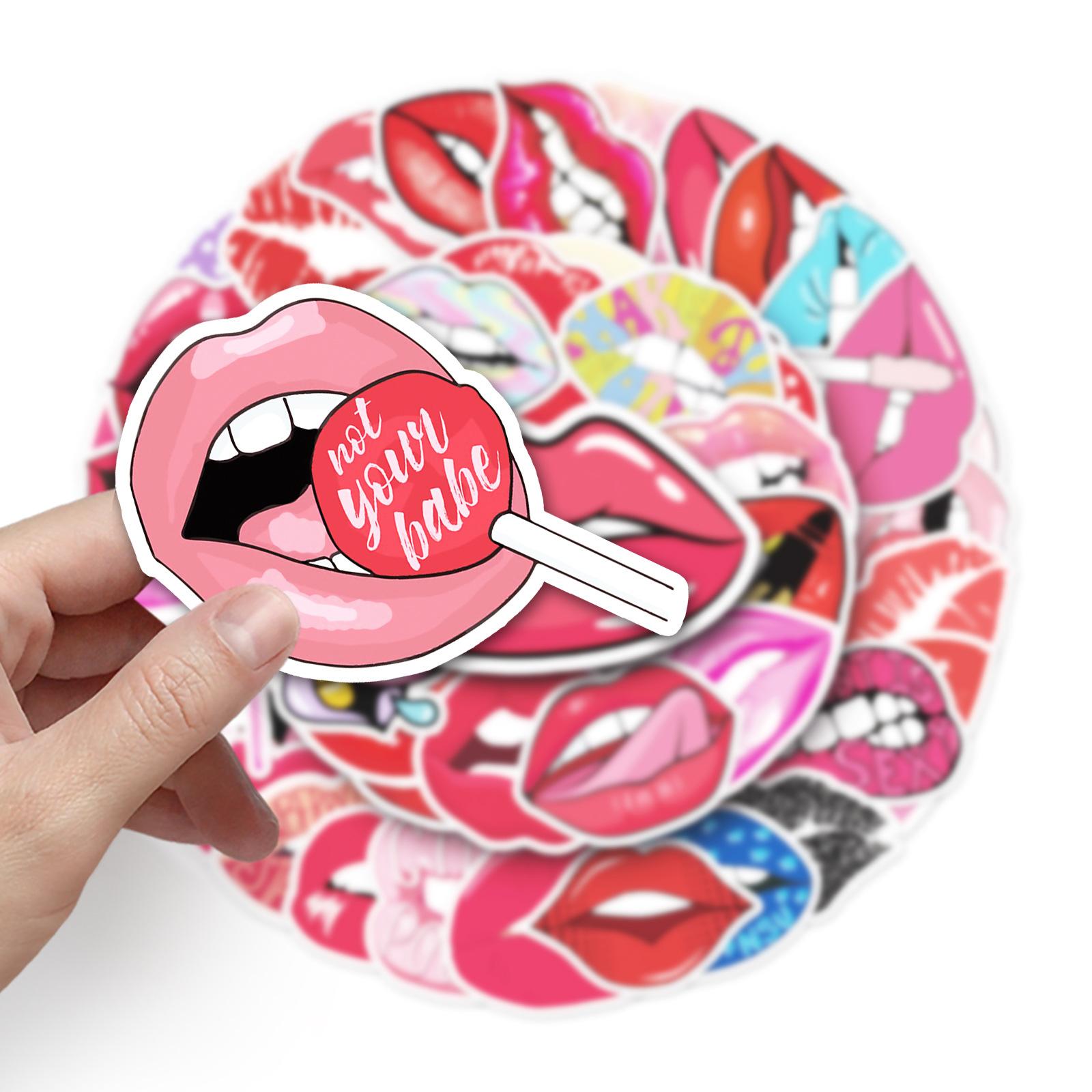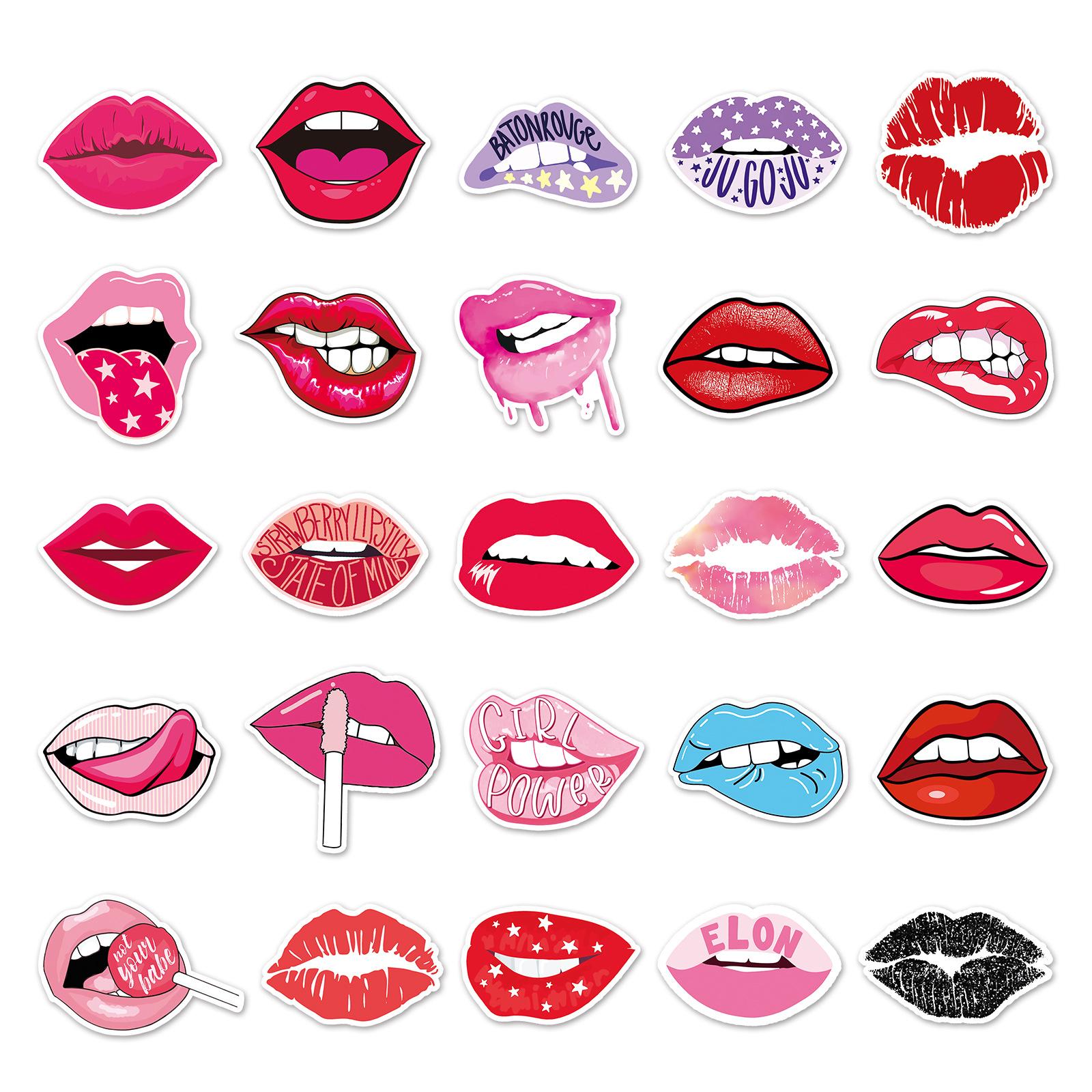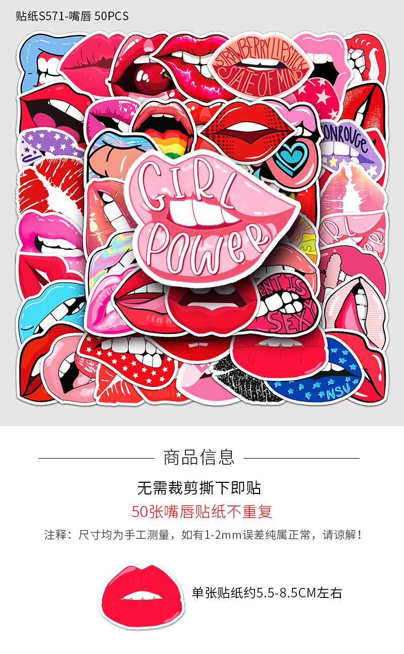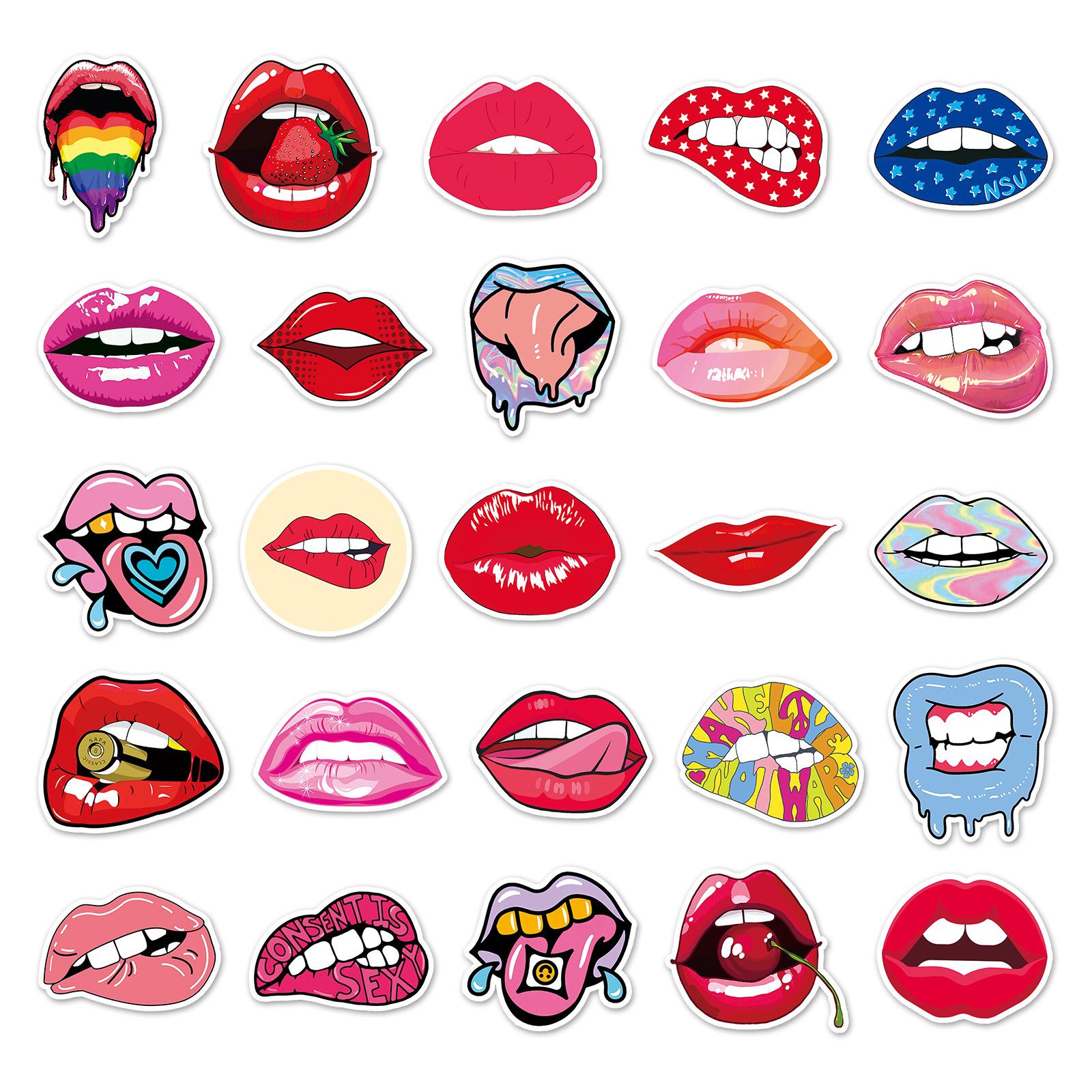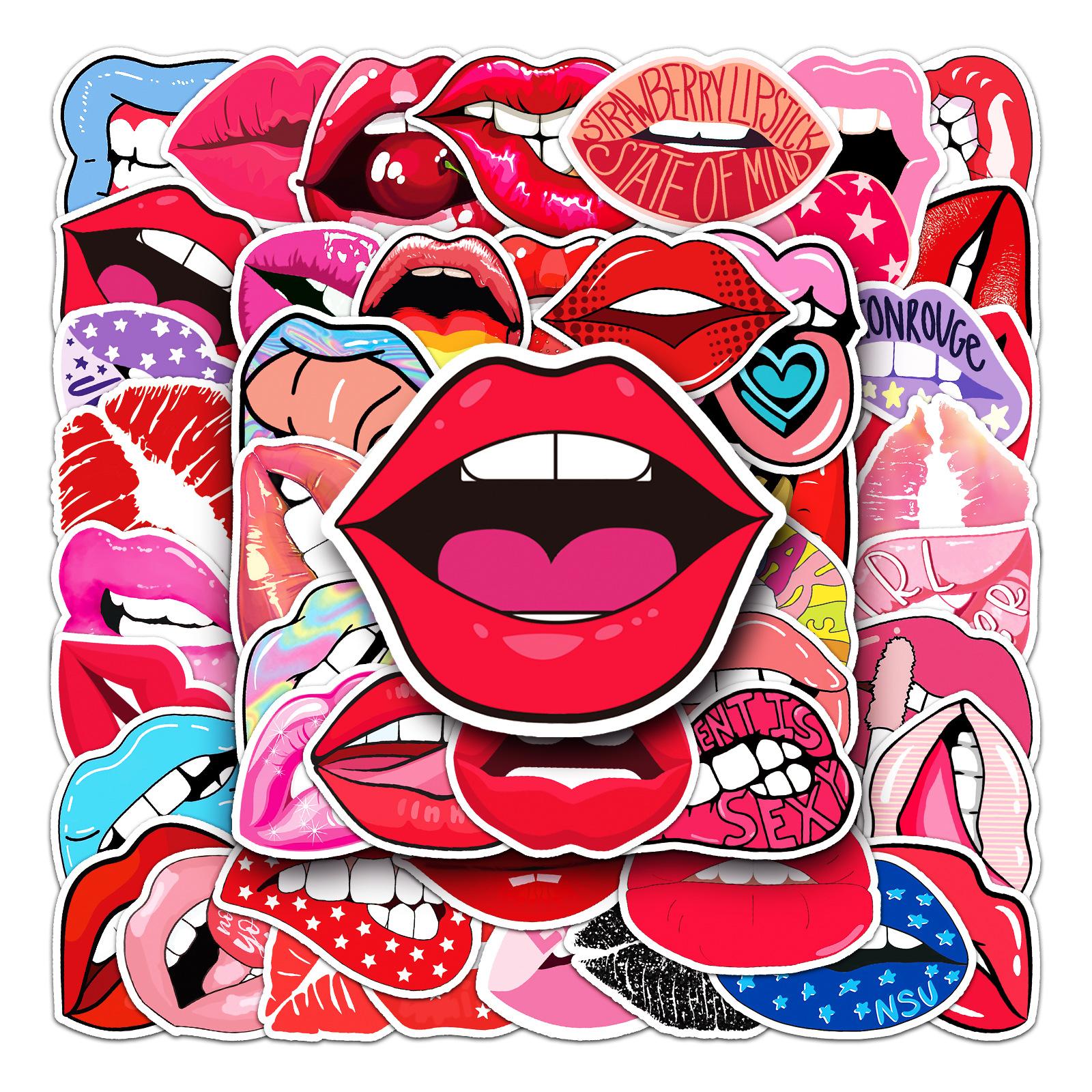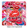 50 pegatinas de dibujos animados creativos de labios para equipaje, pegatinas de grafiti impermeables para scooter, computadora, tableta, guitarra, decoración