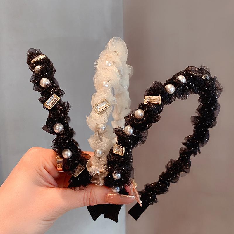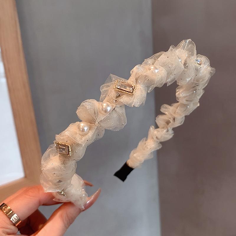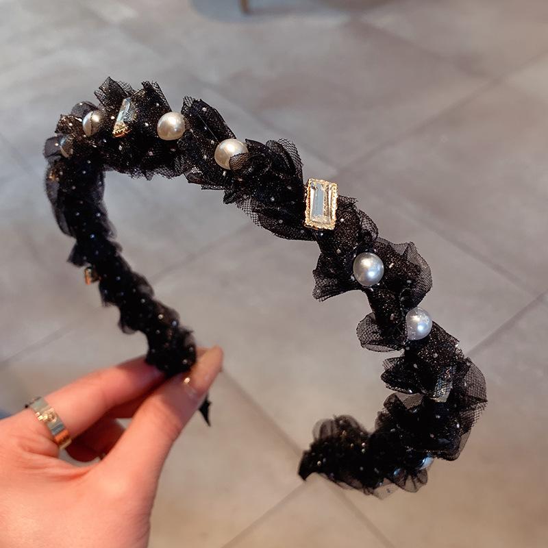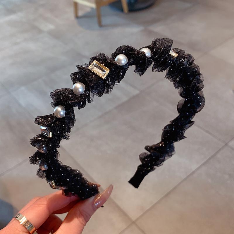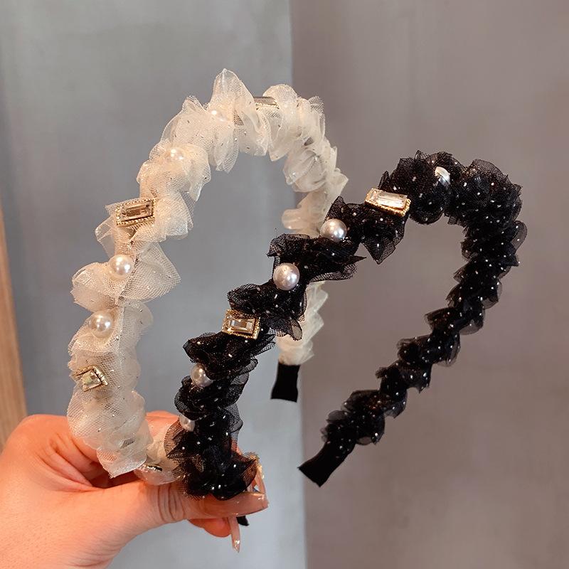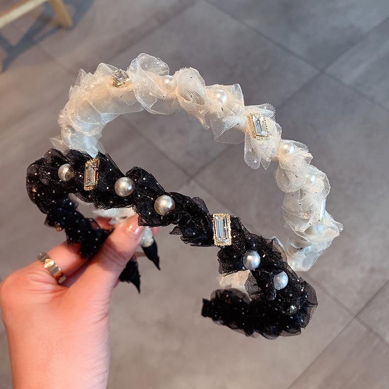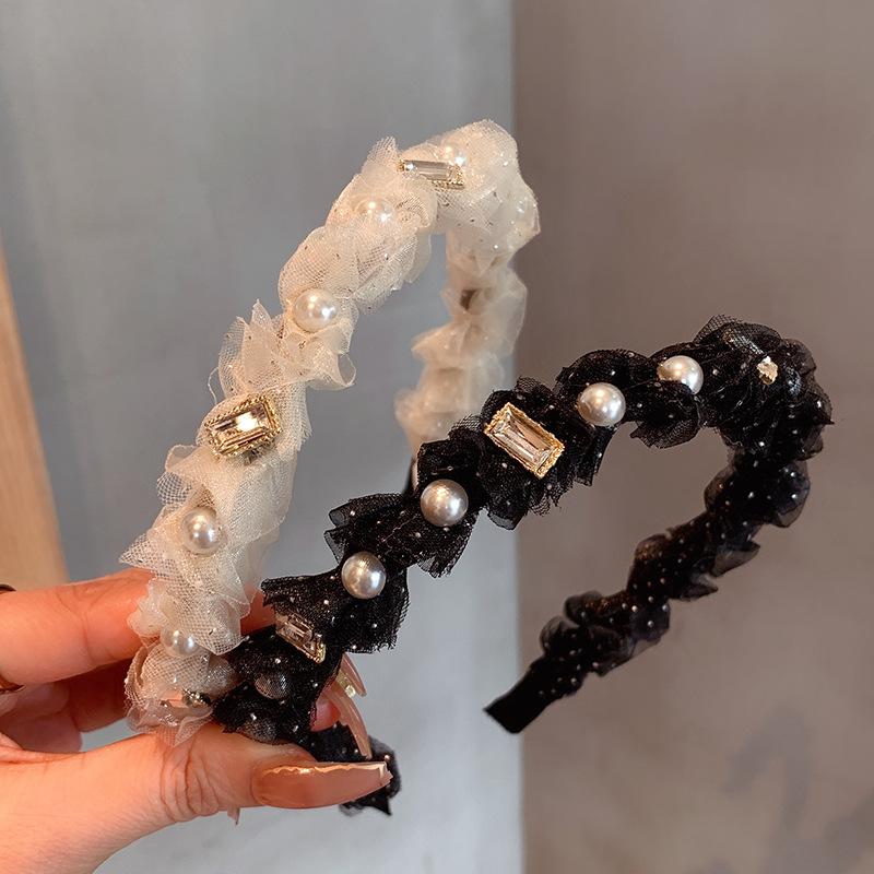 1# Pearl mesh headband-creamy-white, 2# Pearl mesh headband-Black