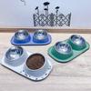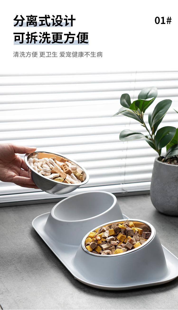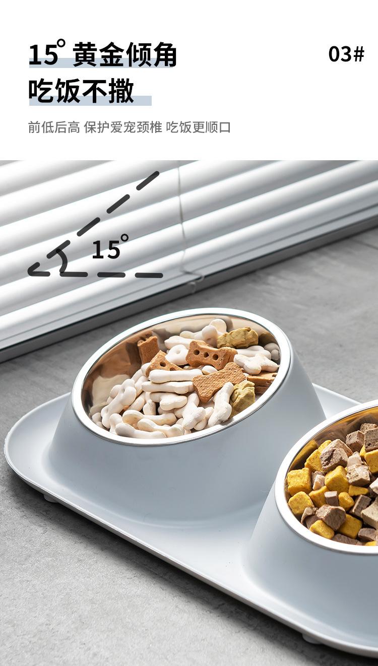 Nuevos suministros para mascotas tazón doble oblicuo para gatos cuello a prueba de fugas duradero tazón de acero inoxidable cuenco para comida de perro ventas directas de fábrica
