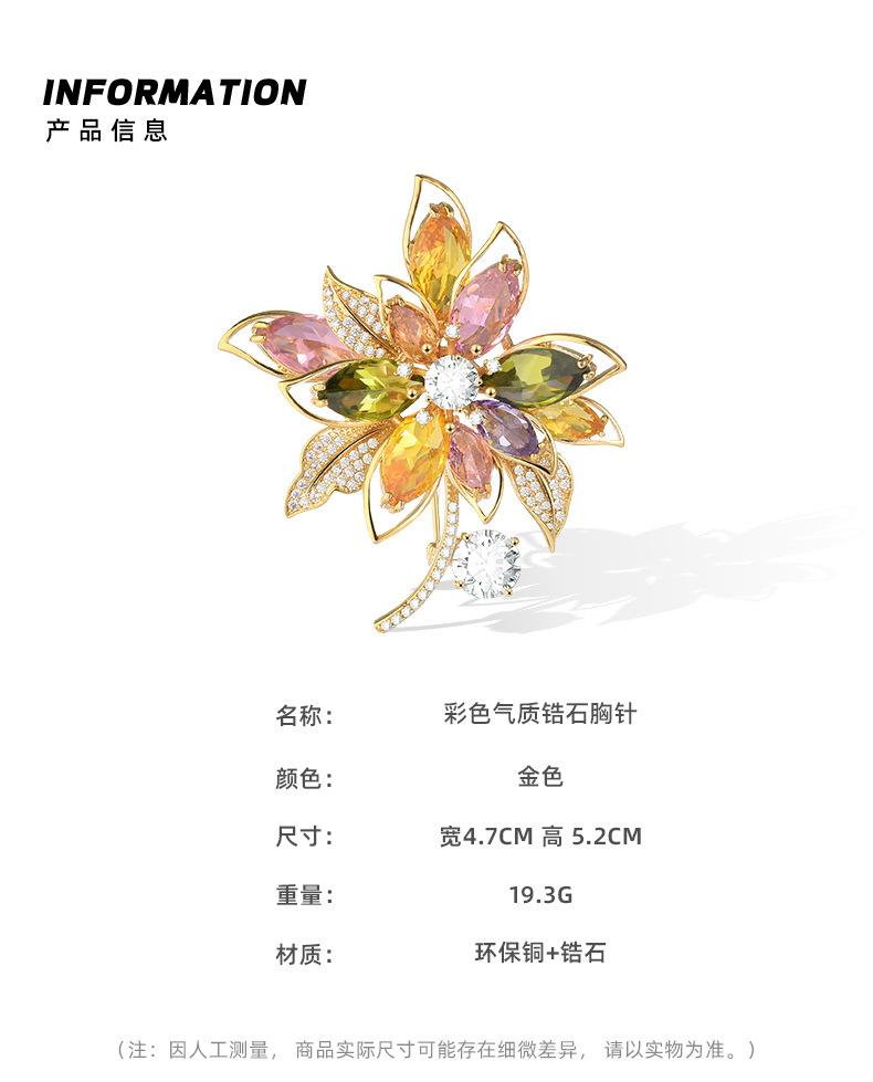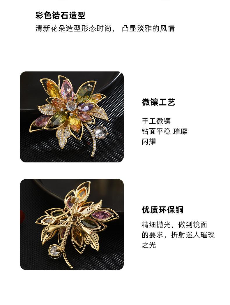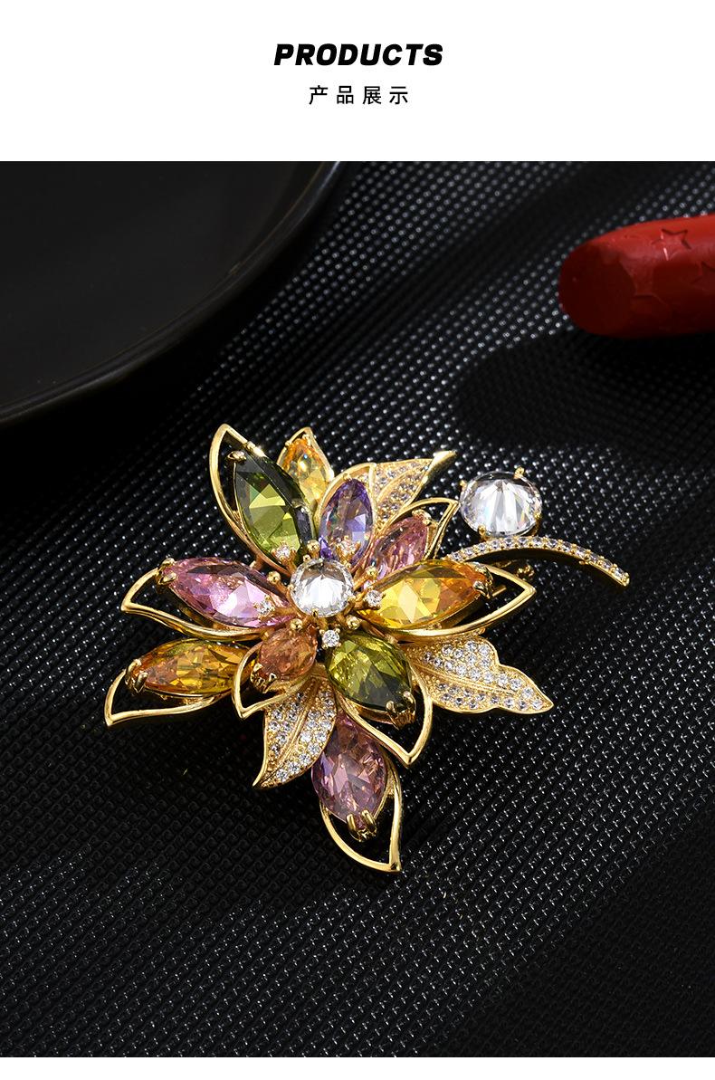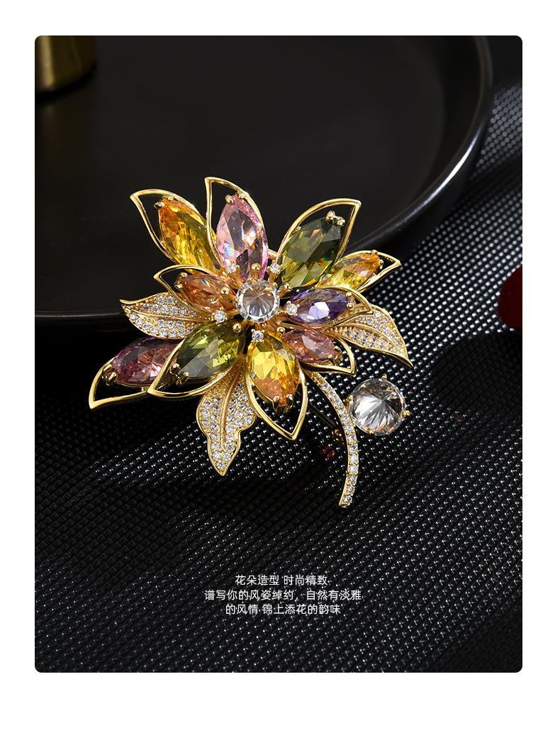 Broche de flores de estilo coreano con corpiño de circonita de color de alta gama, moda, temperamento, para traje, abrigo, accesorios de ropa, venta al por mayor
