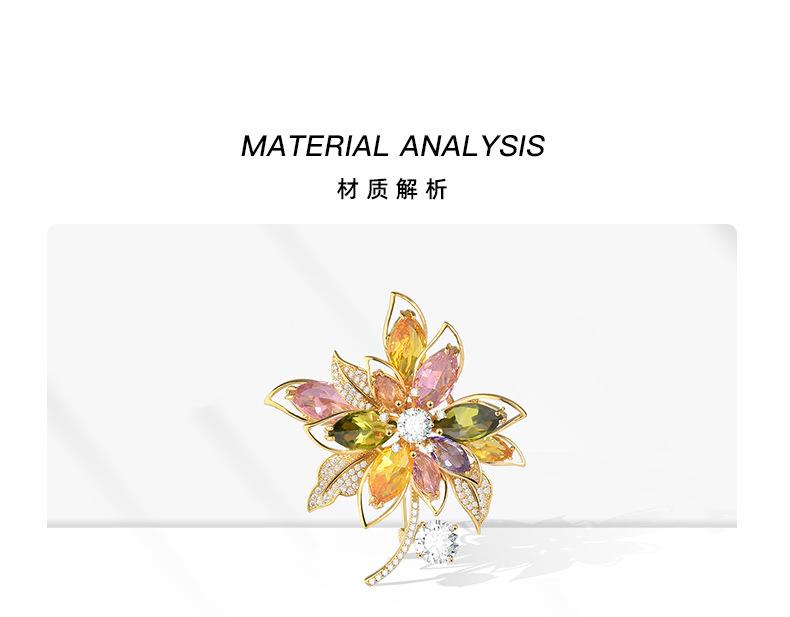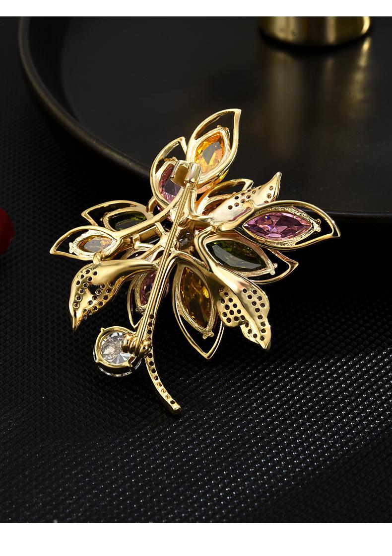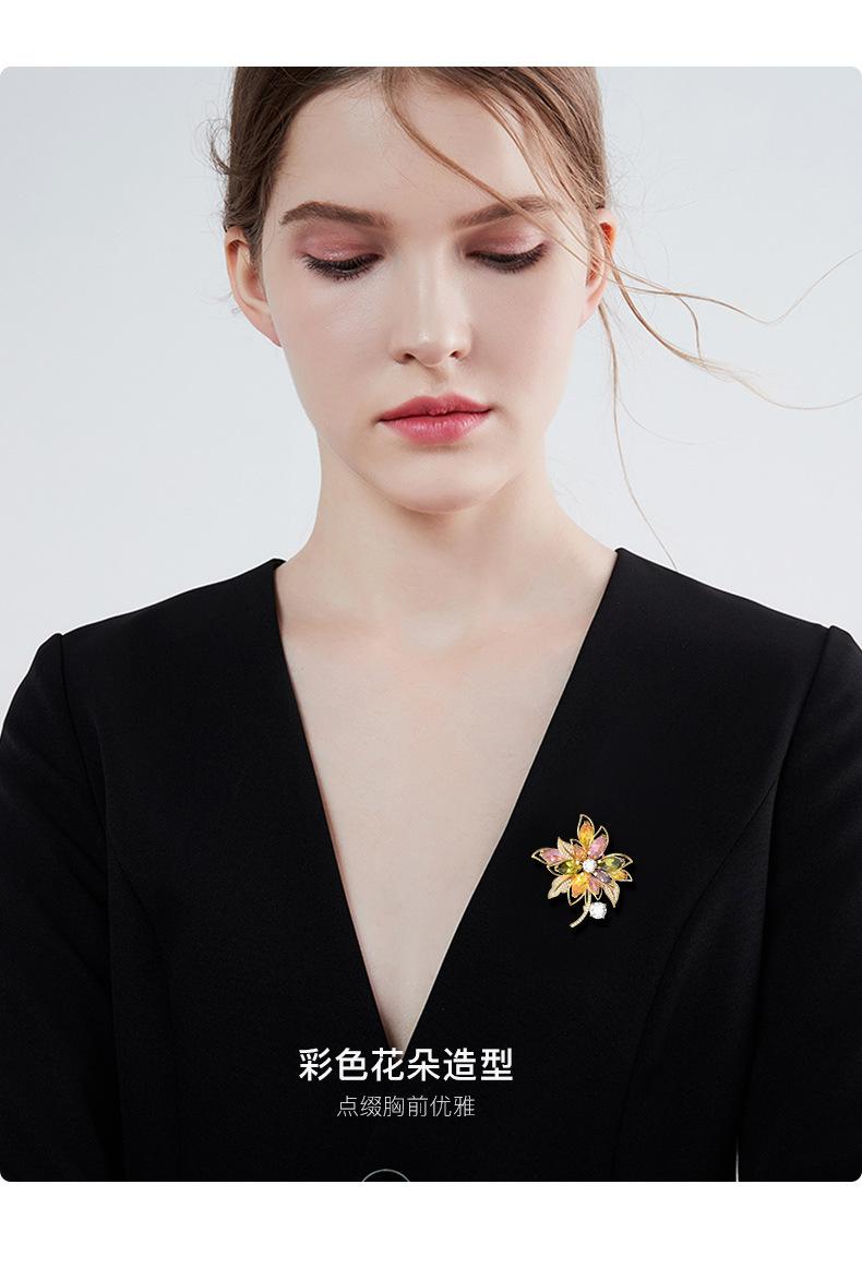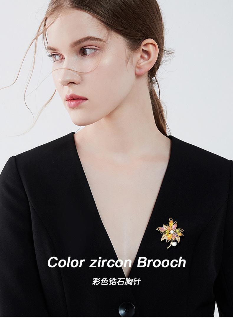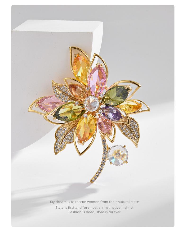 Broche de flores de estilo coreano con corpiño de circonita de color de alta gama, moda, temperamento, para traje, abrigo, accesorios de ropa, venta al por mayor