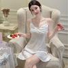 Pijama Sexy para Mujer, Borde de Encaje Privado, Camisón Nuevo de Seda de Hielo con Tirantes y Espalda Hermosa, Pijama Fino de Verano de Lujuria Pura