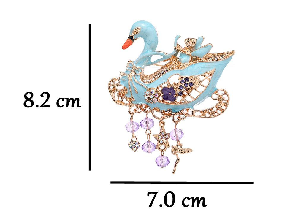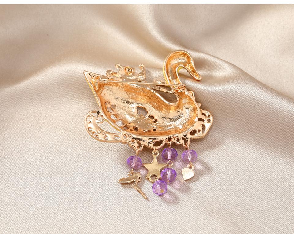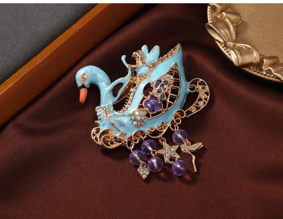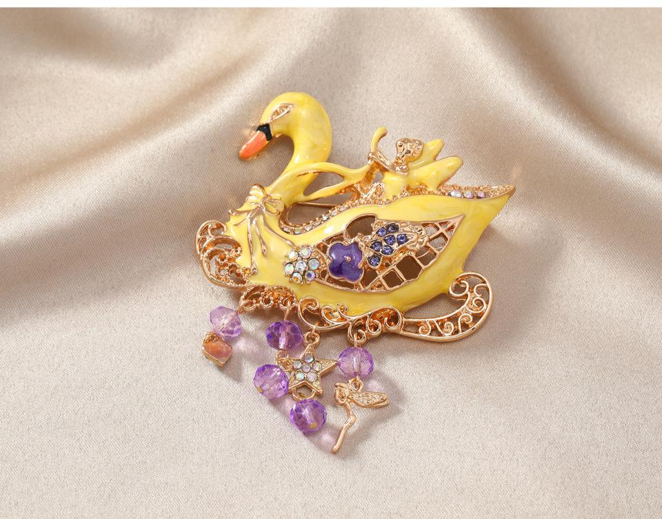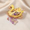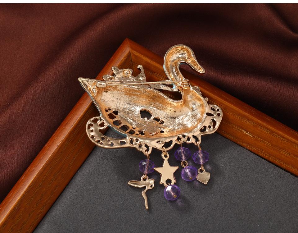 Pin de Cisne Esmaltado Vintage Broche de Animal Hueco con Borla de Pedrería para Mujer Accesorios de Moda para Abrigo Pato