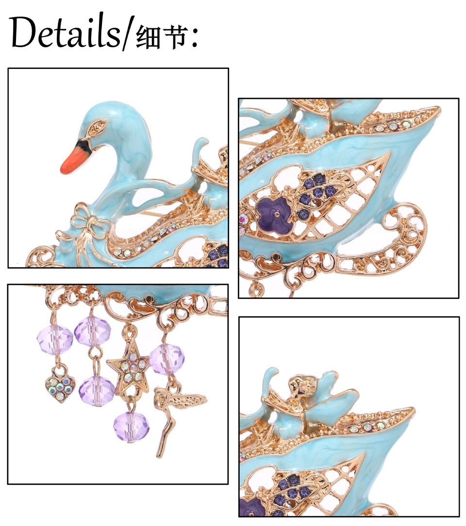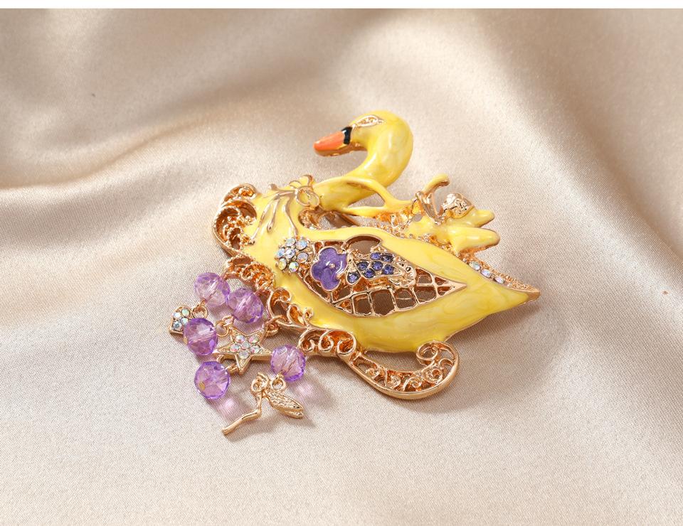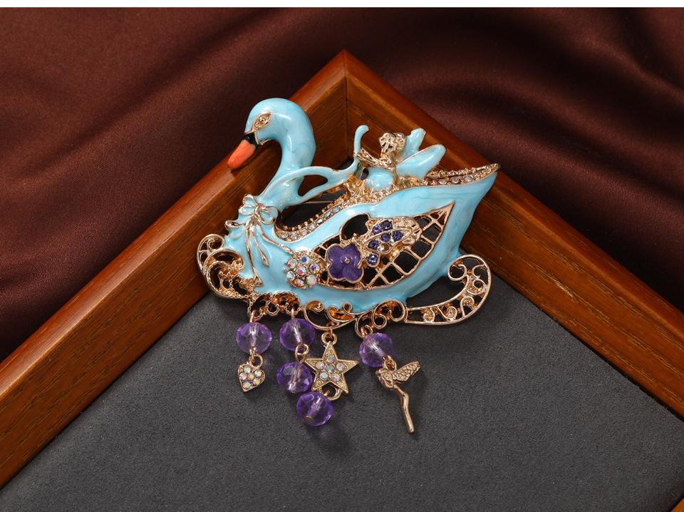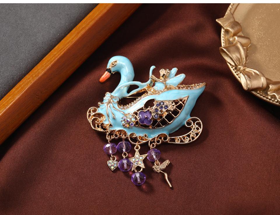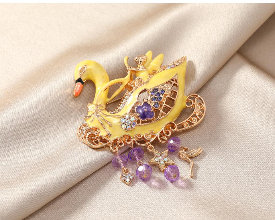 Pin de Cisne Esmaltado Vintage Broche de Animal Hueco con Borla de Pedrería para Mujer Accesorios de Moda para Abrigo Pato
