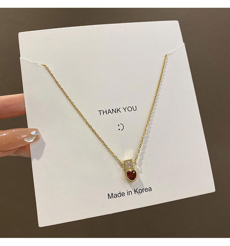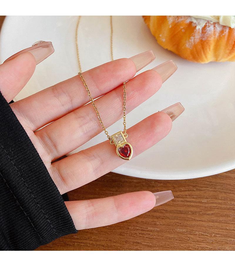 Collar de acero de titanio con colgante de amor de circonita roja para mujer, diseño de nicho de estilo ins de lujo ligero, accesorios de cadena de clavícula roja de red