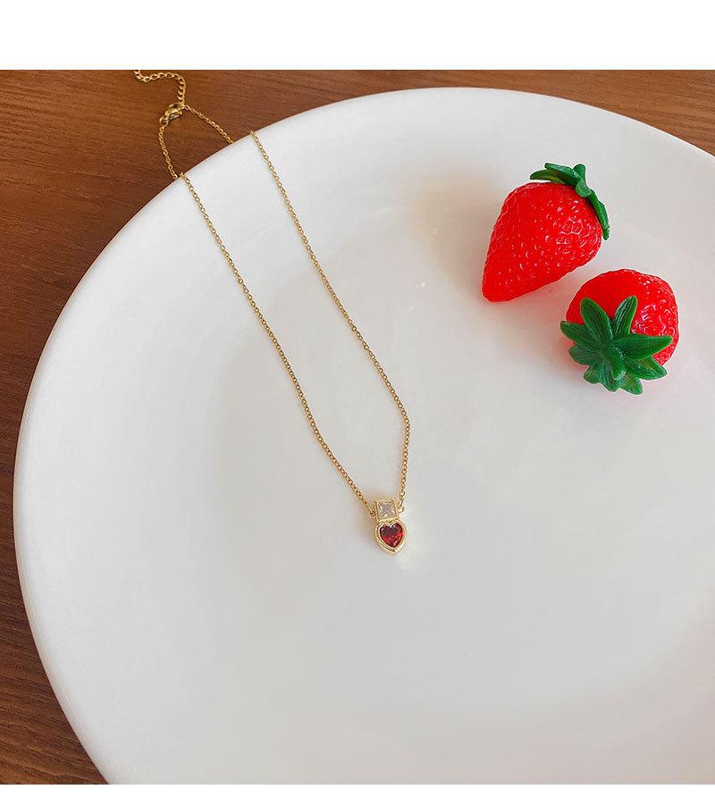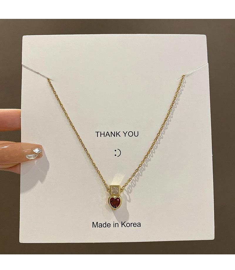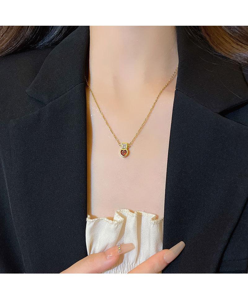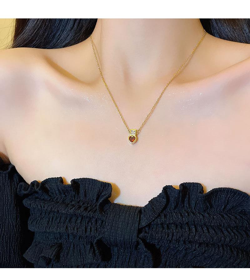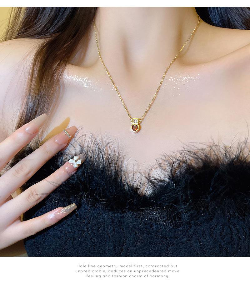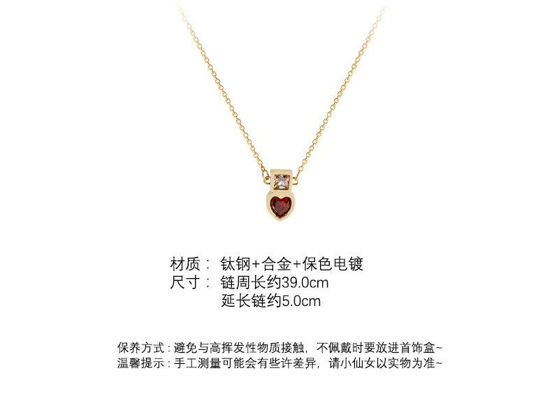 Collar de acero de titanio con colgante de corazón de circón rojo para mujer, lujo ligero, estilo nicho de diseño ins, cadena de clavícula de celebridad de internet, accesorios