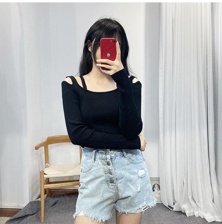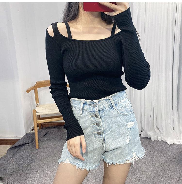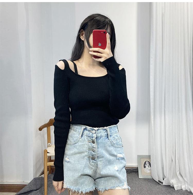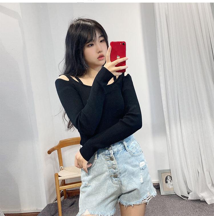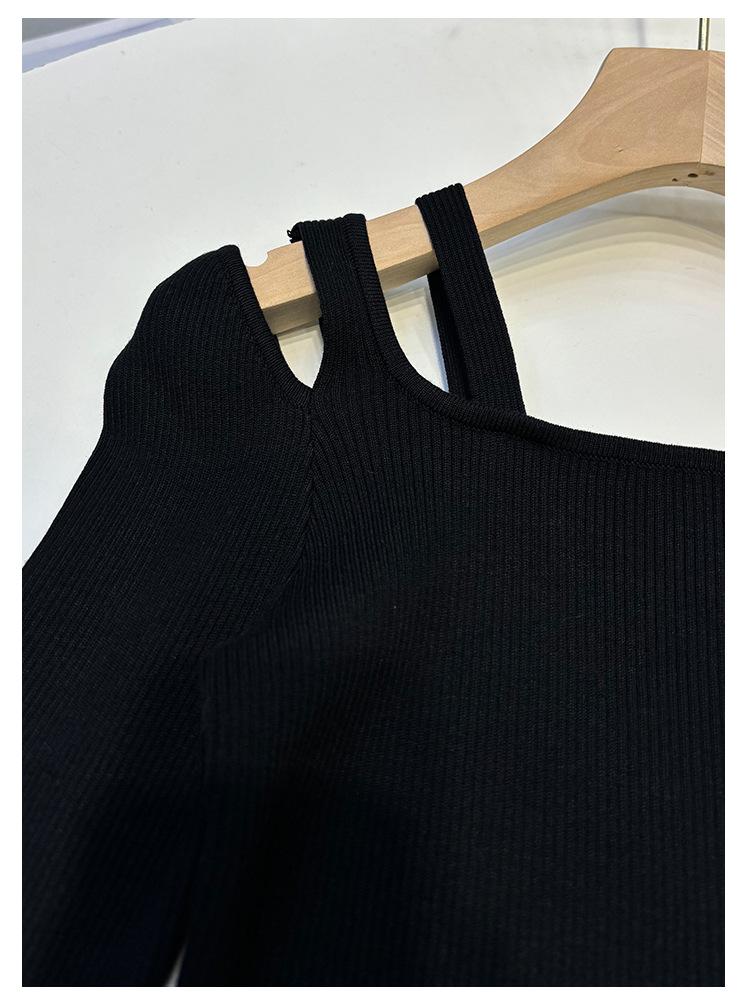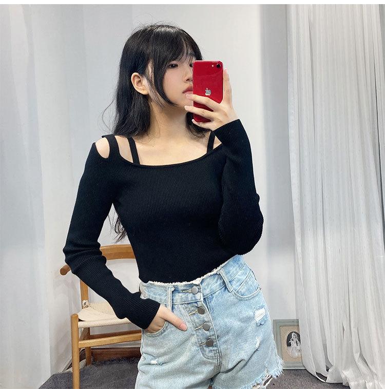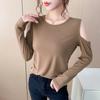 Camisa básica de manga larga sexy con hombros descubiertos de punto para mujer, estilo Spice Girls, de color liso, ajustada, para otoño de 2023