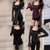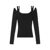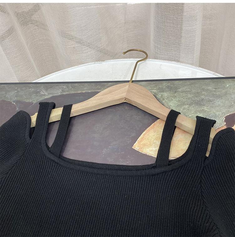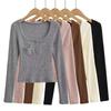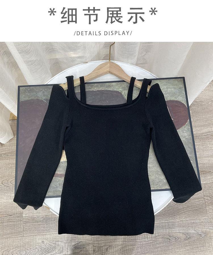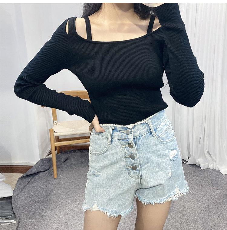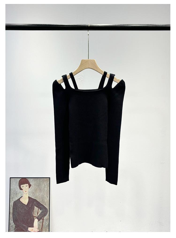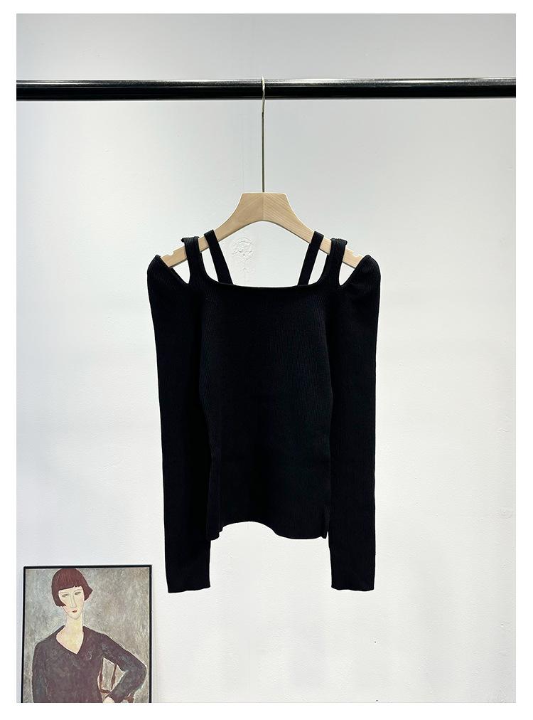 Camisa básica de manga larga sexy con hombros descubiertos de punto para mujer, estilo Spice Girls, de color liso, ajustada, para otoño de 2023