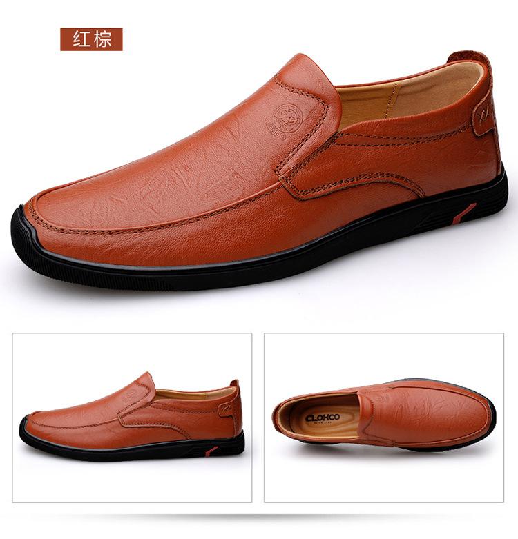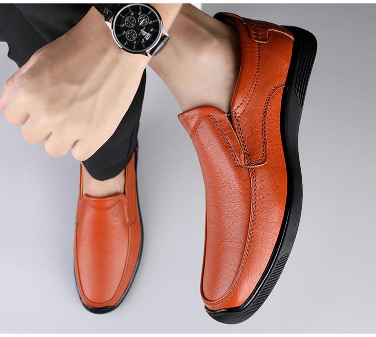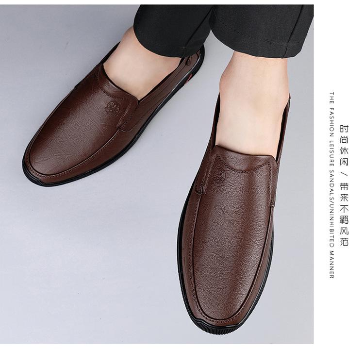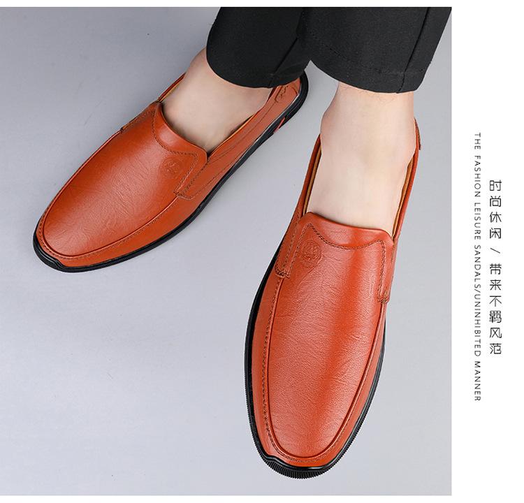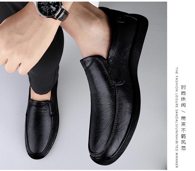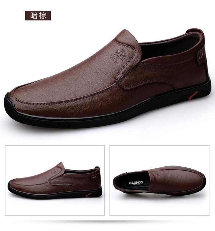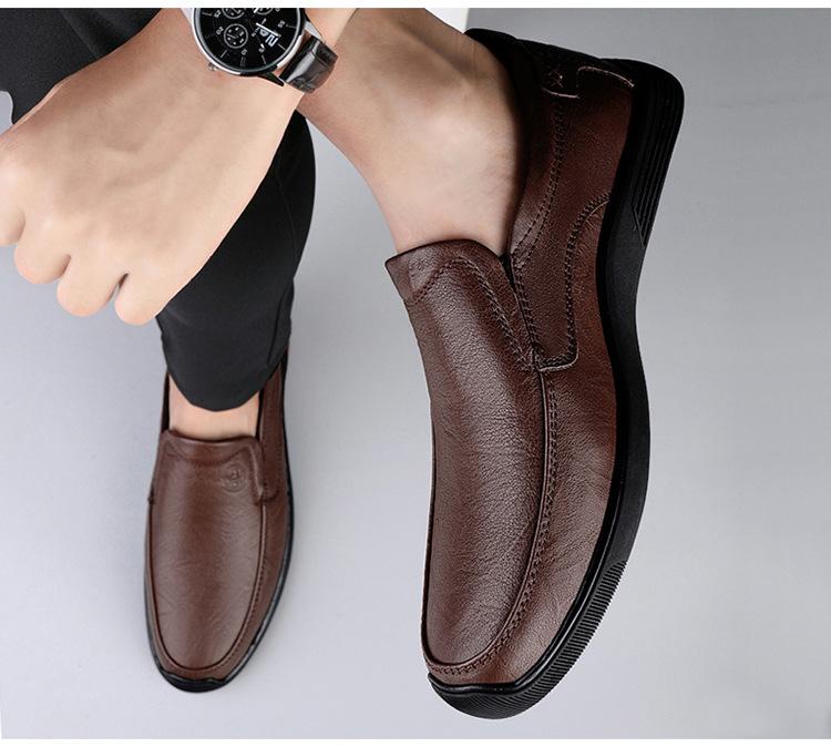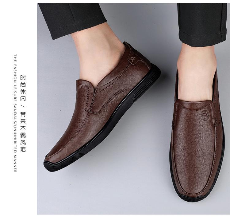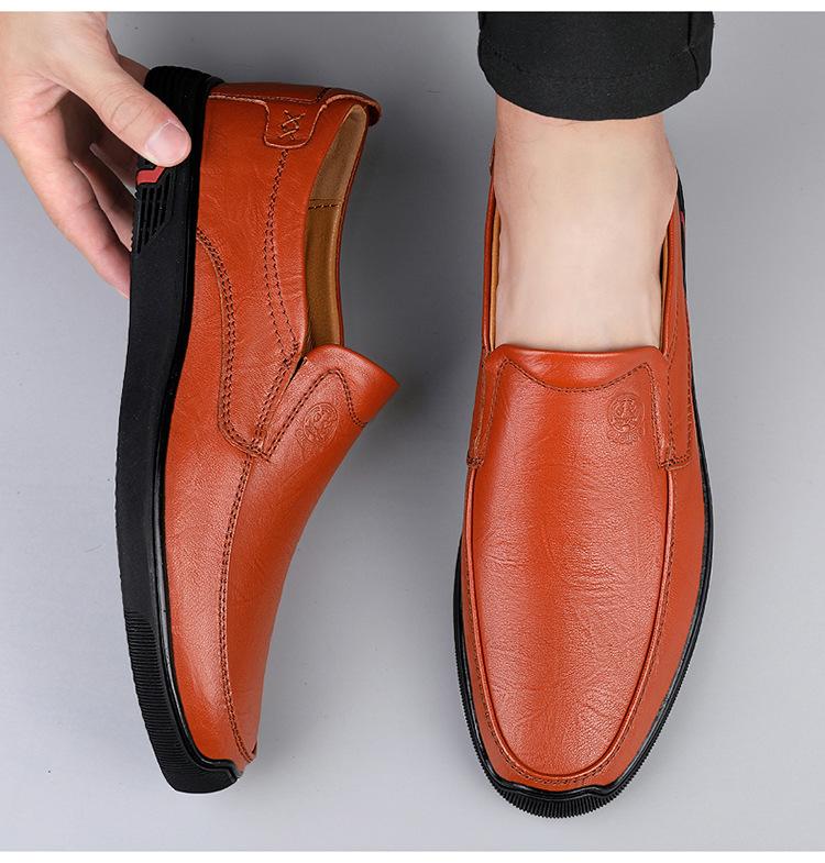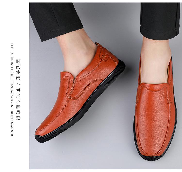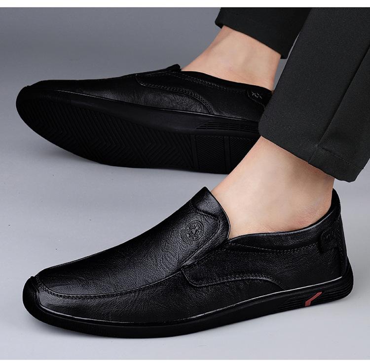 Zapatos casuales de cuero para negocios transfronterizos, zapatos planos sin cordones para conducir para hombres, zapatos casuales para las cuatro estaciones, zapatos de guisantes, zapatos de piel de vaca para hombres.