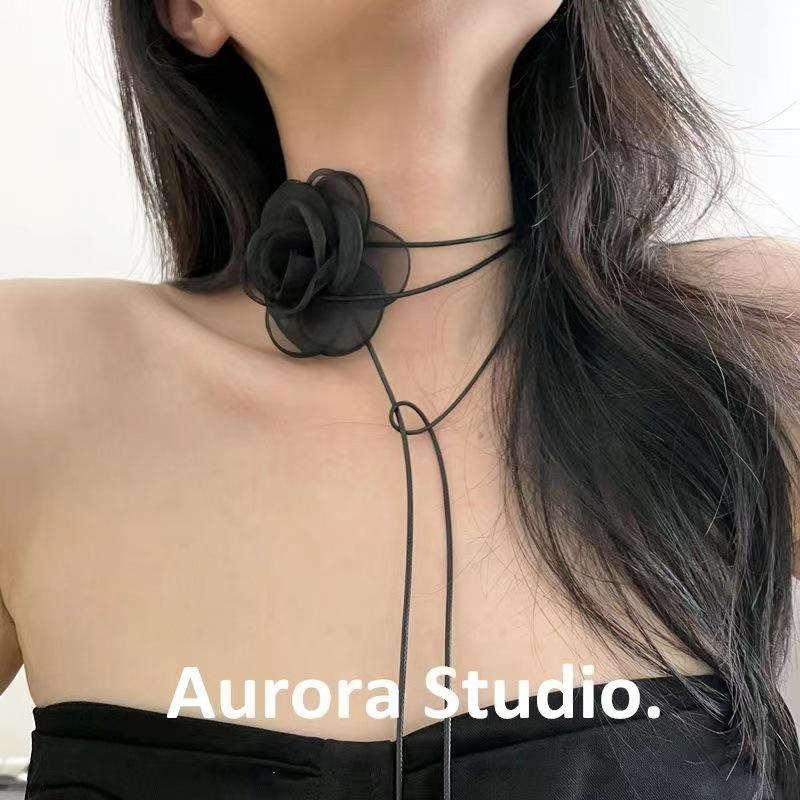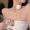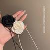 Collar de flores en blanco y negro, gargantilla de rosas, collar con correa para el cuello de flores, collar de cuello femenino, cadena de clavícula de camelia