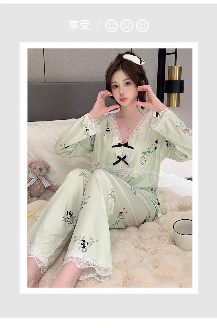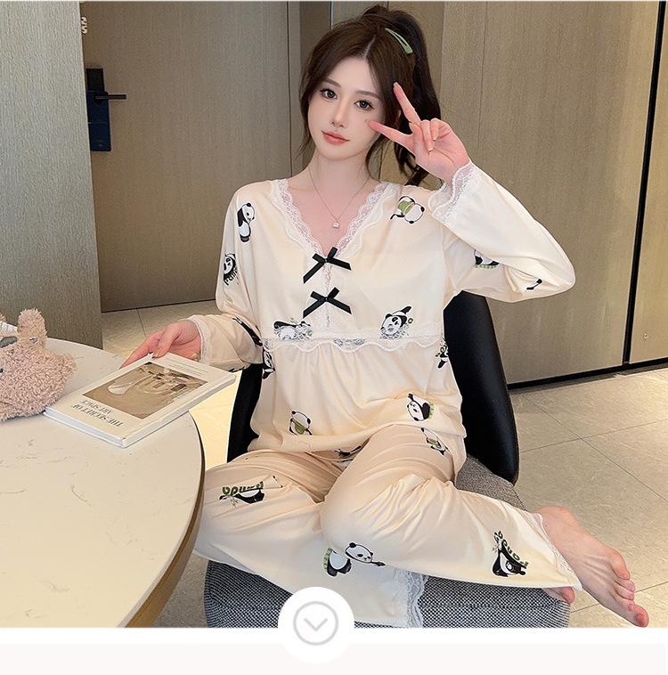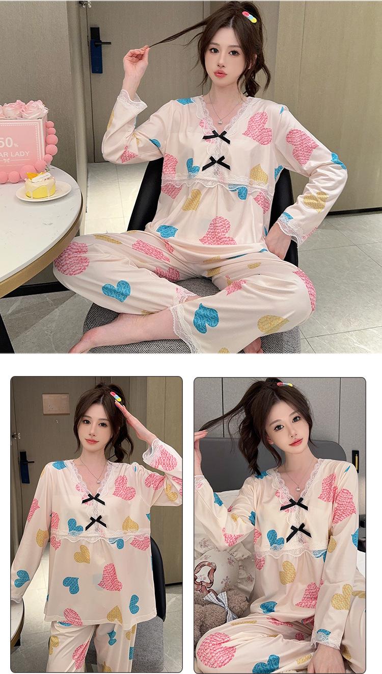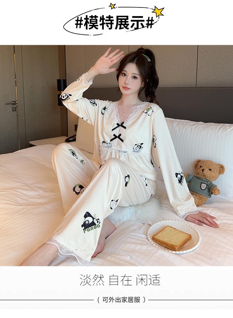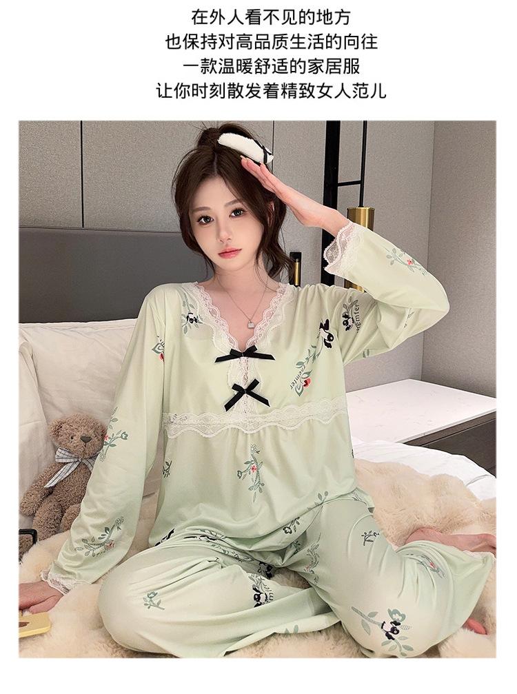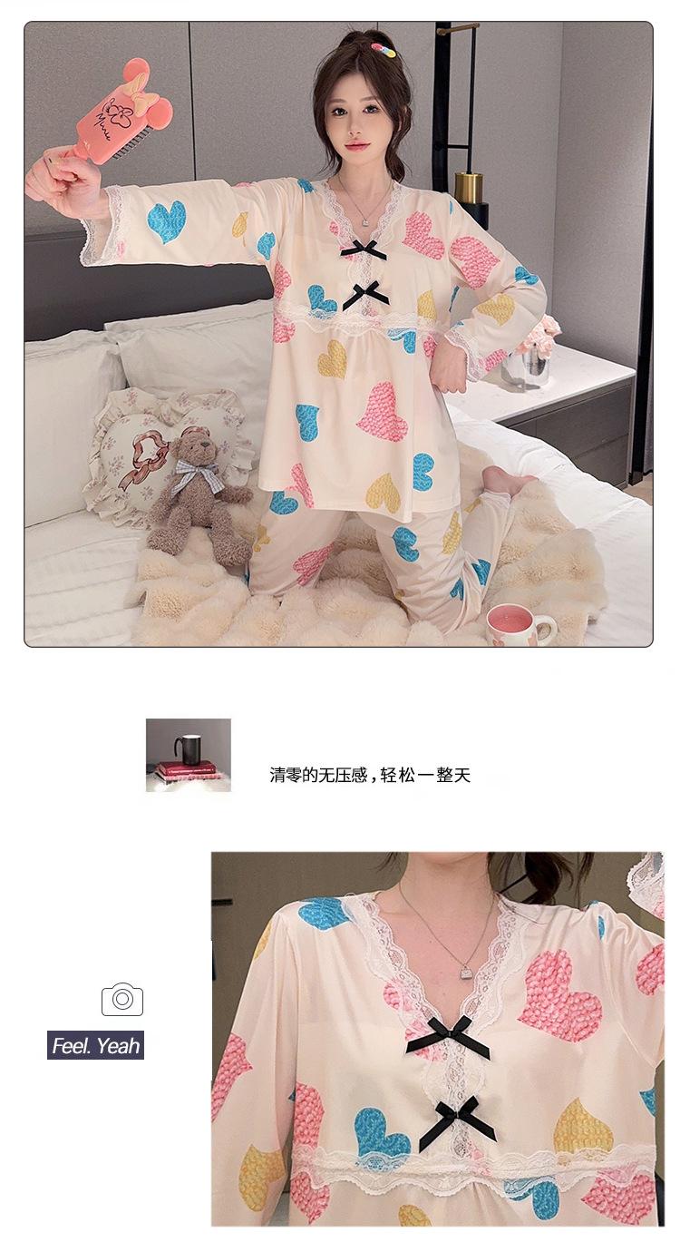 Pijamas de primavera y otoño para mujer, estilo princesa dulce y lindo, pantalones de manga larga con almohadilla en el pecho, talla grande, ropa de casa para chica gordita
