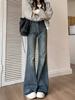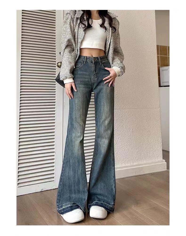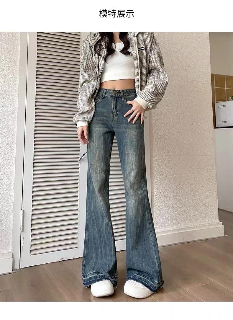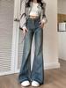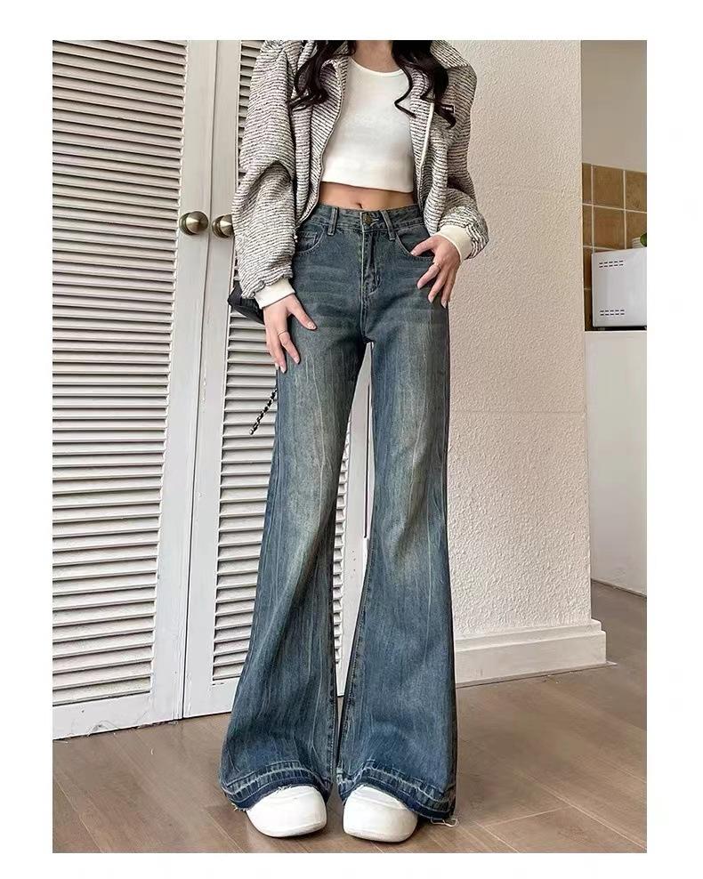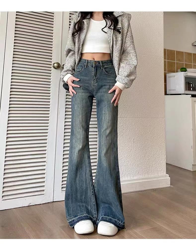 Pantalones vaqueros ajustados de cintura alta, ajustados, estilo retro americano, deshilachados, con pierna ancha y diseño de herradura, primavera 2024