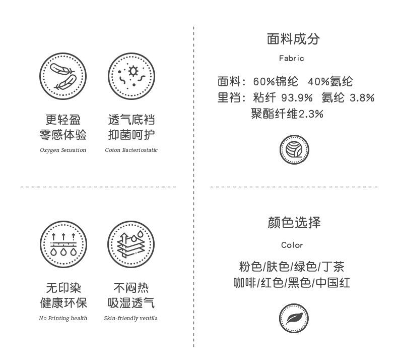No trace, Hip lift, Quick drying, Breathable, Invisible, Antibacterial, Anti-running light