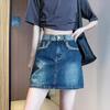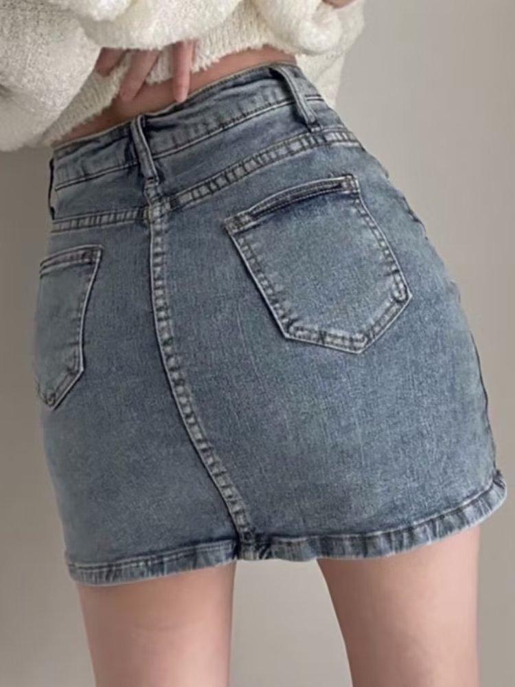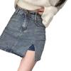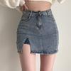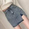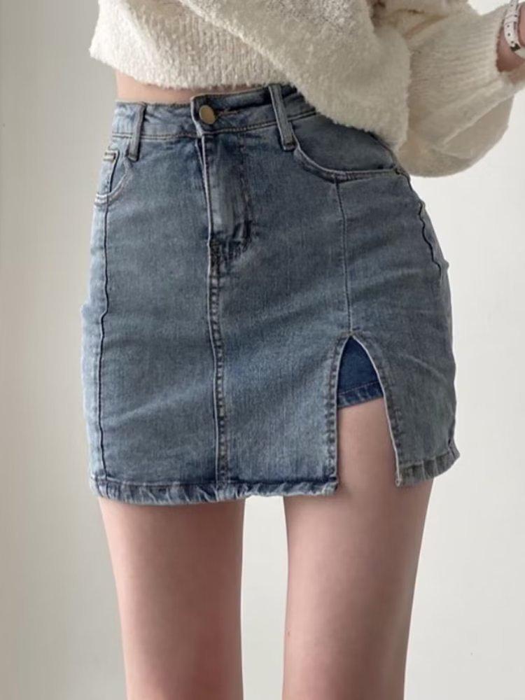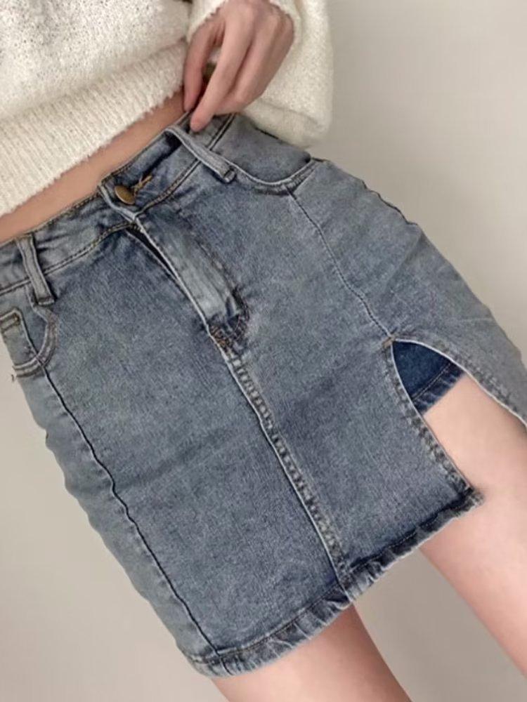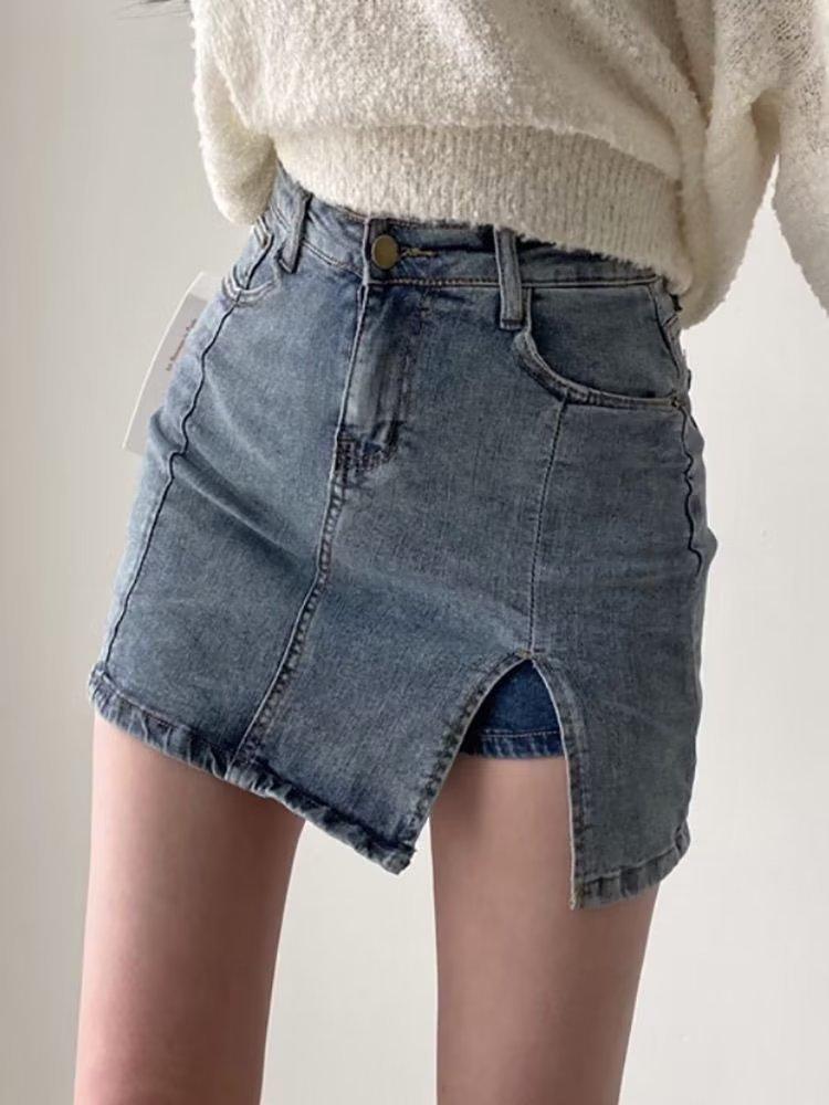 Falda de mezclilla con abertura para mujer, falda corta de verano para chica sexy, nueva falda pantalón de verano, falda que cubre las caderas, falda línea A de talle alto para un look adelgazante