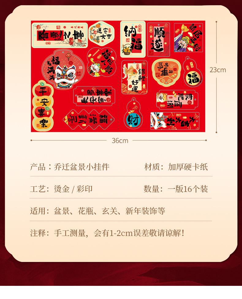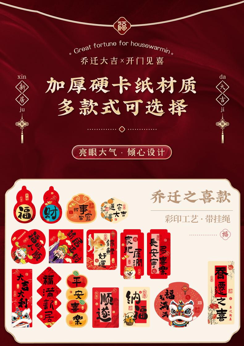 Double-sided color printing-housewarming (16 pieces), Hot stamping model-good luck entering the house (16 piec...