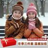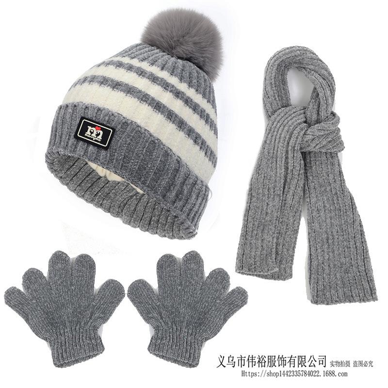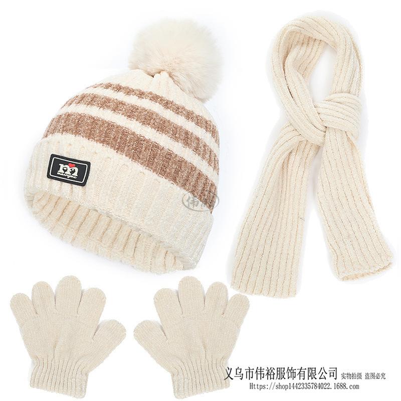 Edad recomendada: 1-5 años. Este es un conjunto de tres piezas de gorro, bufanda y guantes.