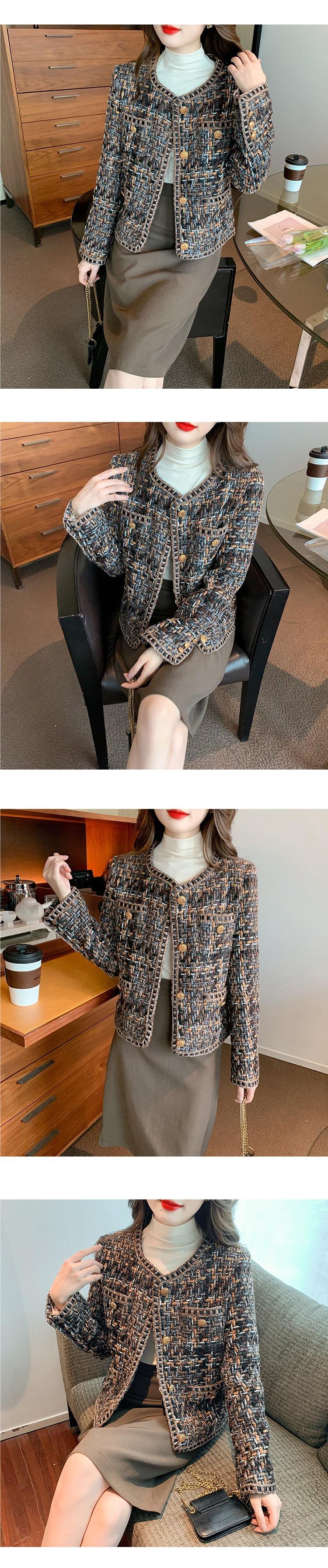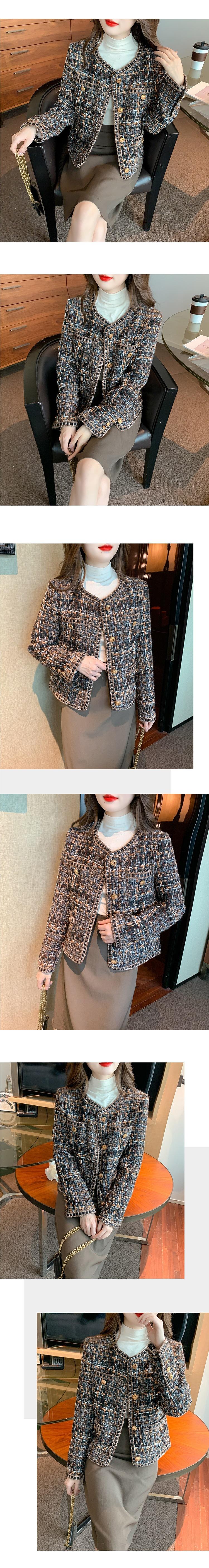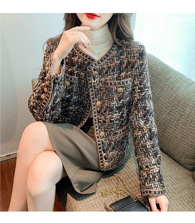 Foto Real Otoño e Invierno 2025 Abrigo Estilo Chanel para Mujer Combinable Estilo Occidental Marca de Moda Top Corto de Tweed de Cintura Alta