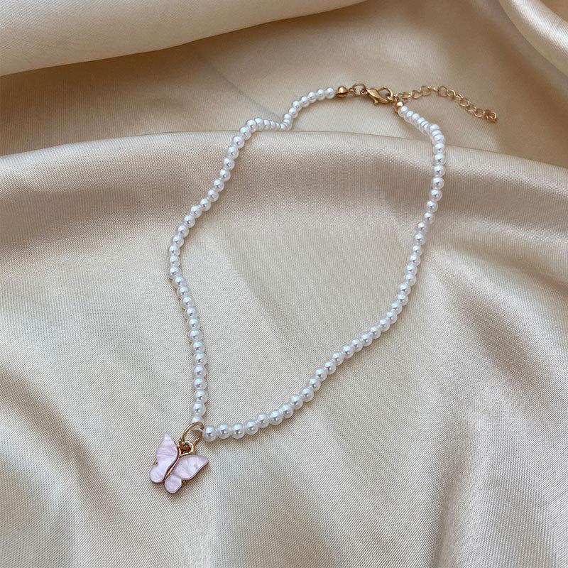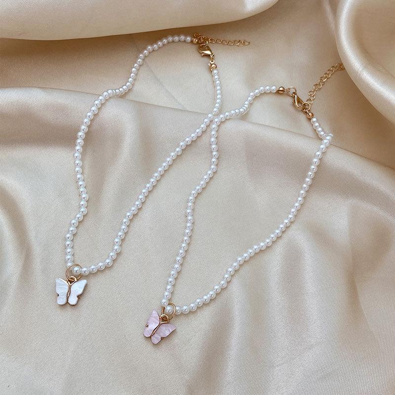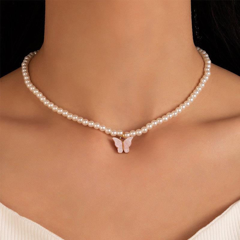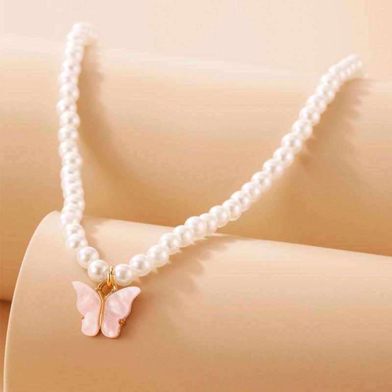 Venta caliente transfronteriza: collar con colgante de mariposa de acrílico con perla de imitación ABS para mujer, collar bohemio con cadena de clavícula, venta al por mayor.