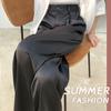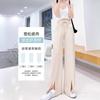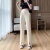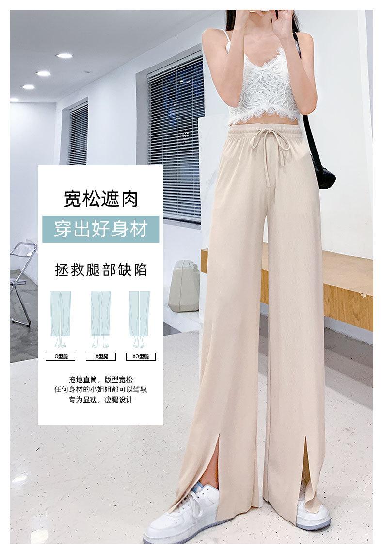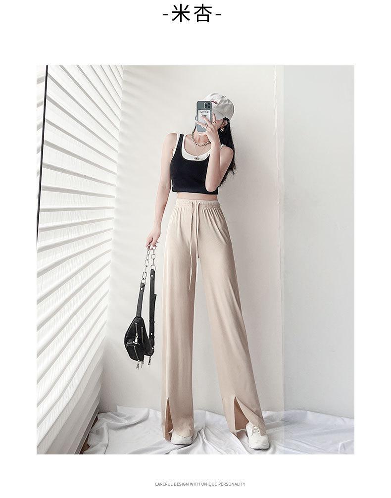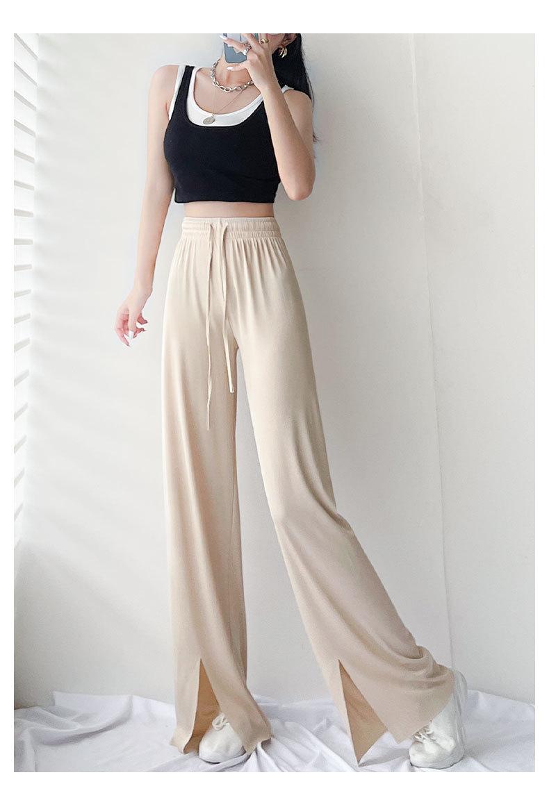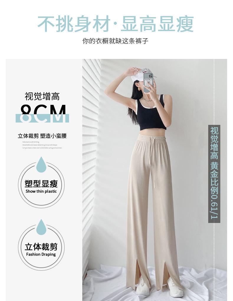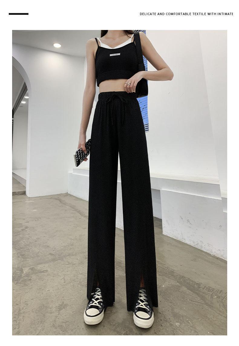 Pantalones de Pierna Ancha de Seda Helada para Mujer Verano Cintura Alta Drapeados 2025 Nuevo Pequeño Delicado Abertura Recto Largo al Piso Pantalones Casuales
