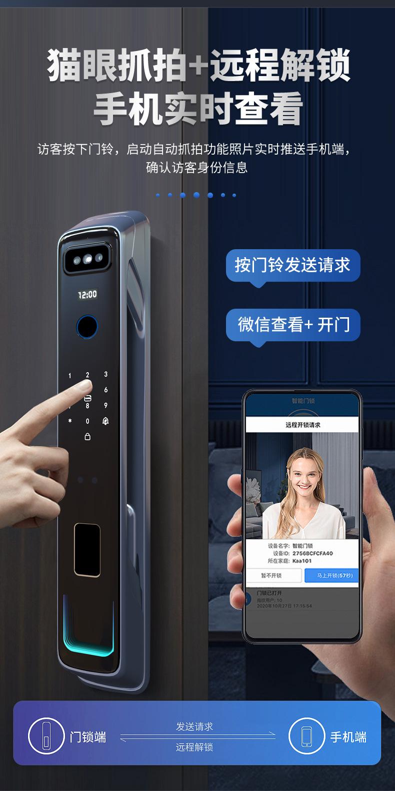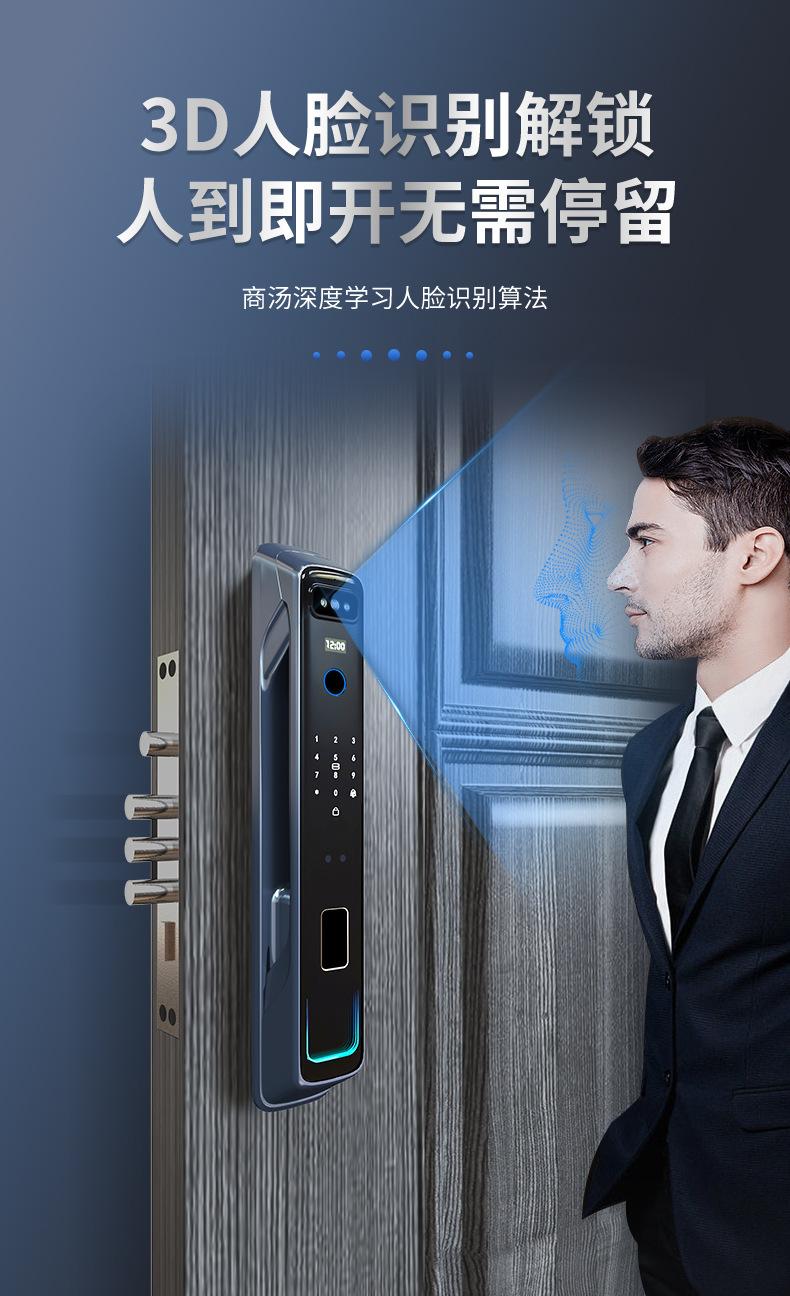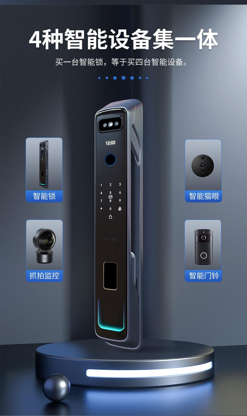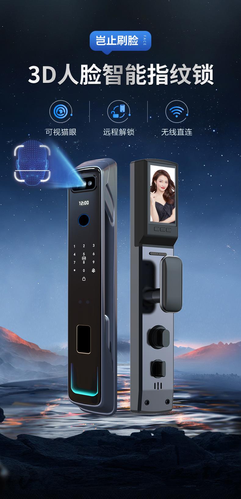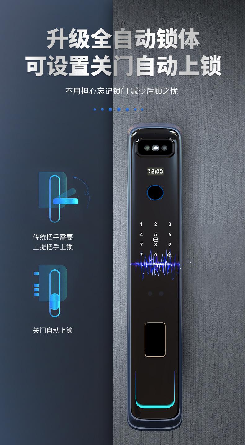 Cerradura inteligente totalmente automática con reconocimiento facial 3D, cerradura con huella dactilar, cerradura con contraseña electrónica remota visual para el hogar, fuente de fábrica