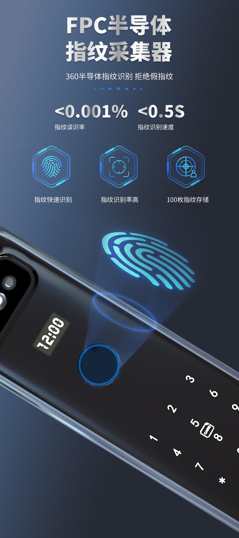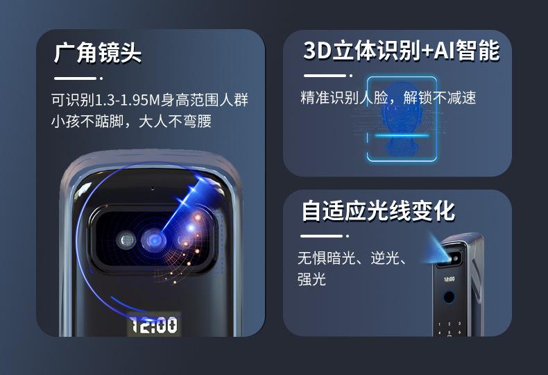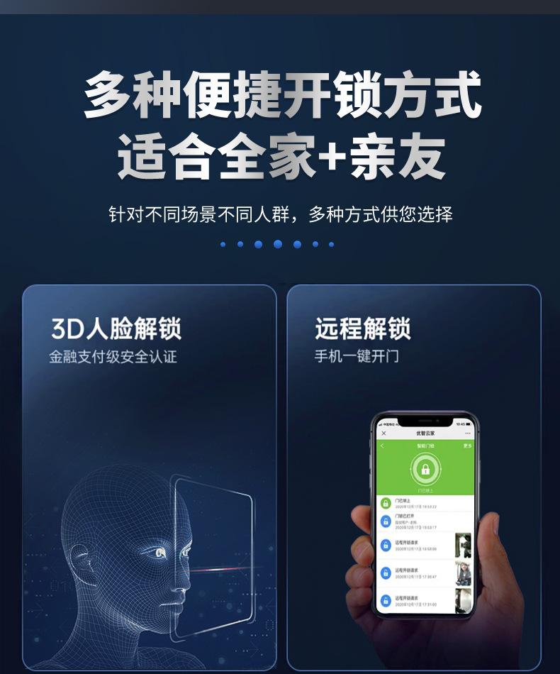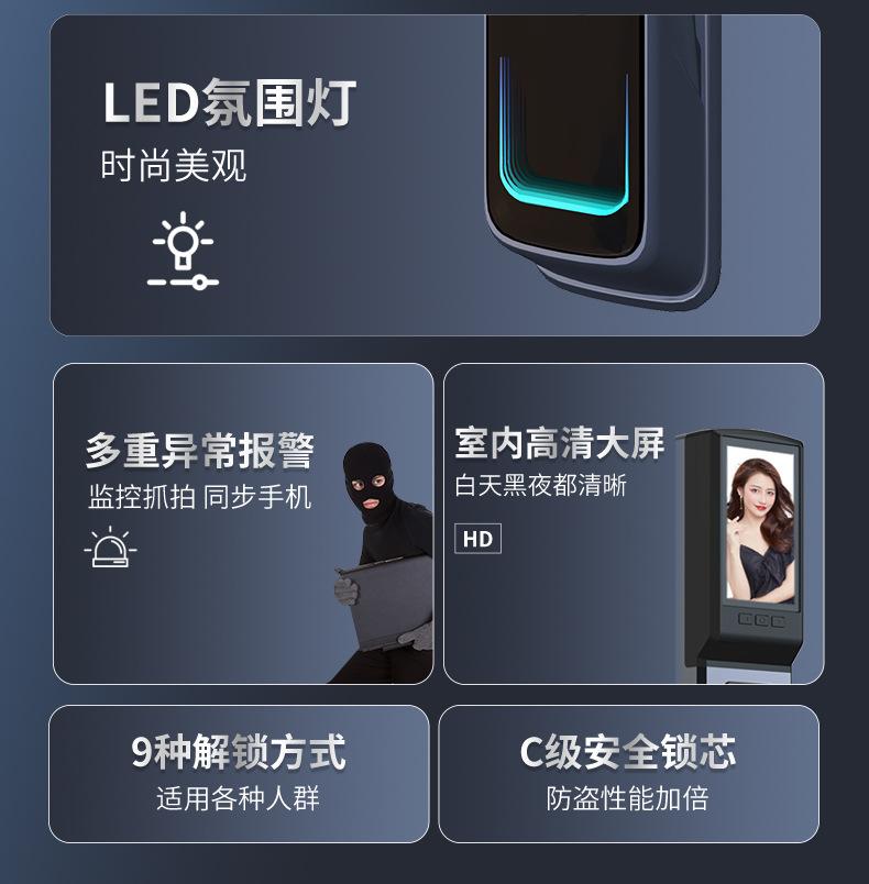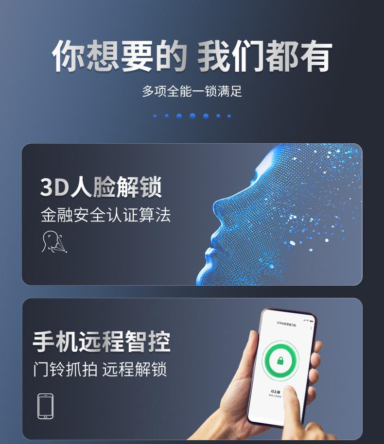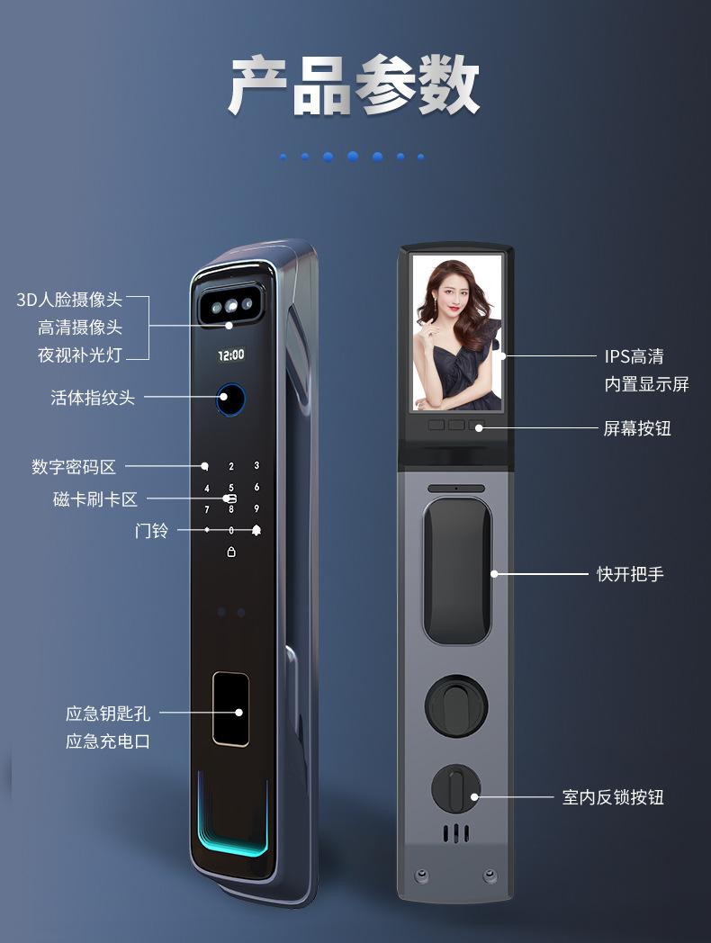 Cerradura inteligente totalmente automática con reconocimiento facial 3D, cerradura con huella dactilar, cerradura con contraseña electrónica remota visual para el hogar, fuente de fábrica