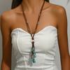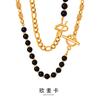 Collar con cuentas redondas de ágata de piedra natural china, hecho a mano con hebilla, cadena de acero de titanio, personalidad femenina, temperamento, joyería que combina con todo.