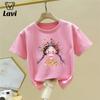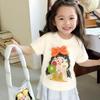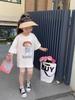 Camiseta de Verano de Manga Corta para Niñas Nueva 2025 Algodón Puro Delgada Cuello Redondo Arcoíris Manga Media Bebé Estampado Camiseta Básica Trbottomy